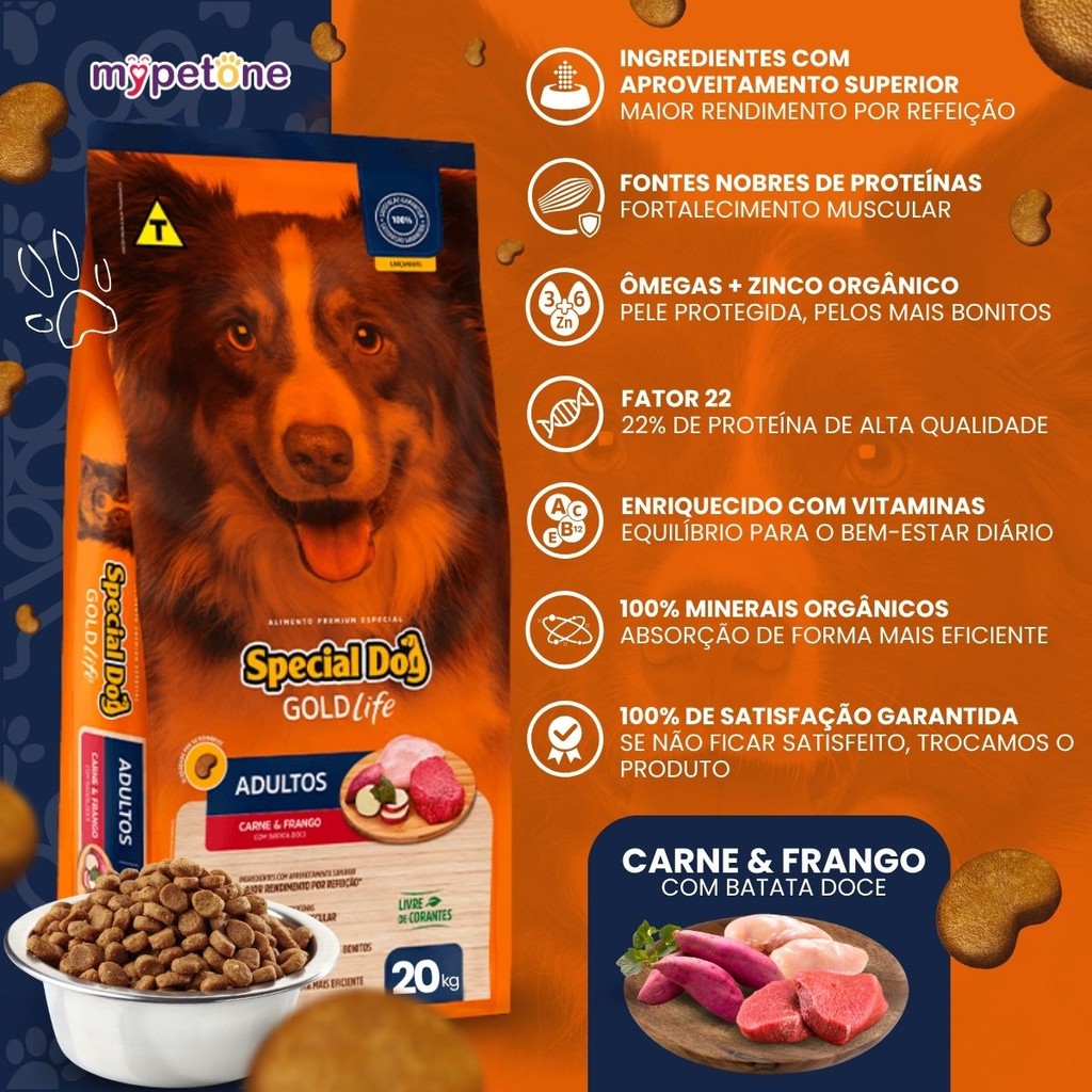 Ração Special Dog Gold Life Adultos Sabor Carne e Frango com Batata-doce - 20Kg
