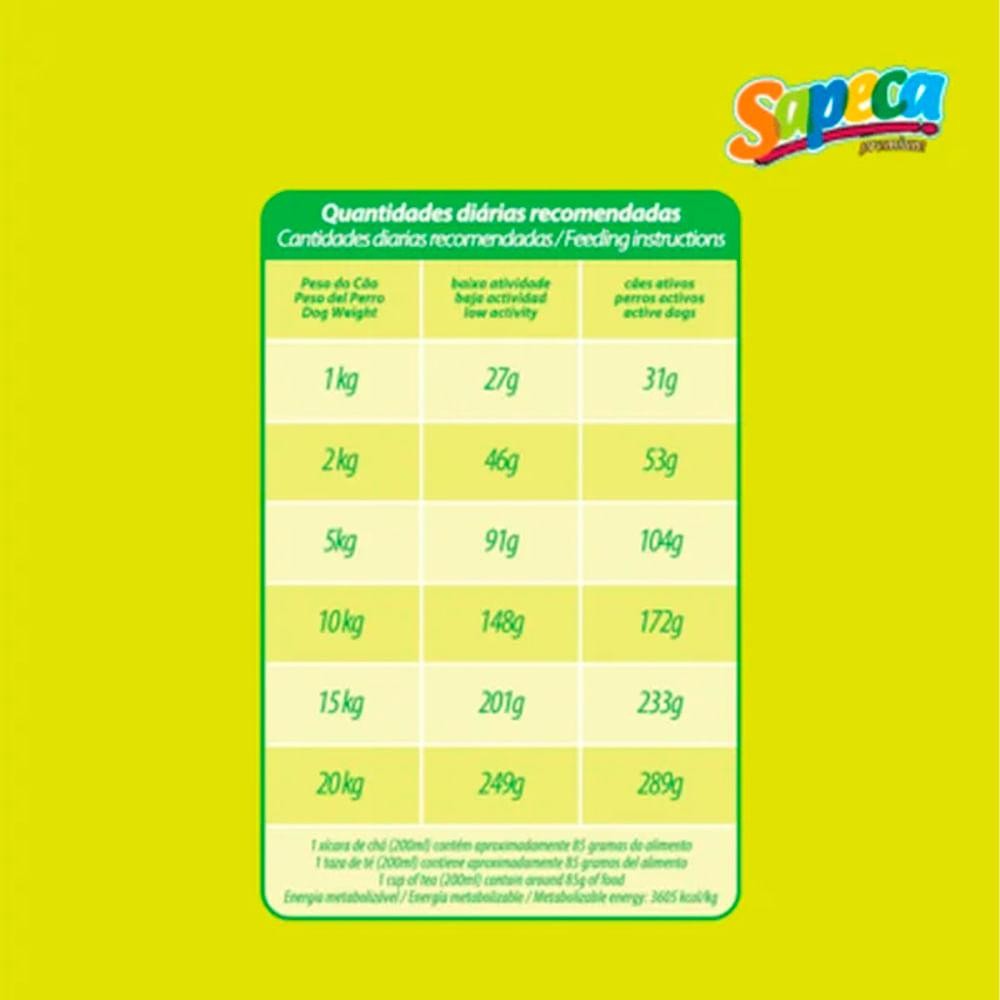 A Ração Supra Sapeca Cães Raça Pequena foi especialmente desenvolvida para atender às necessidades nutricionais dos cães de pequeno porte, proporcionando uma alimentação balanceada e saborosa. Rica em proteínas de alta qualidade, vitaminas e minerais, contribui para a saúde da pele, pelagem brilhante, suporte ao sistema imunológico e energia ideal para o dia a dia dos pets. Com grãos adaptados ao tamanho das raças pequenas, facilita a mastigação e digestão, garantindo refeições mais prazerosas e nutritivas. DiferenciaisProteína de alta qualidade para músculos fortes Enriquecida com vitaminas e minerais essenciais Grãos pequenos, ideais para cães de raças pequenas Ingredientes selecionados para alta palatabilidade Auxilia na saúde bucal e digestiva Suporte ao sistema imunológico Pelagem saudável e brilhante Energia equilibrada para cães ativos