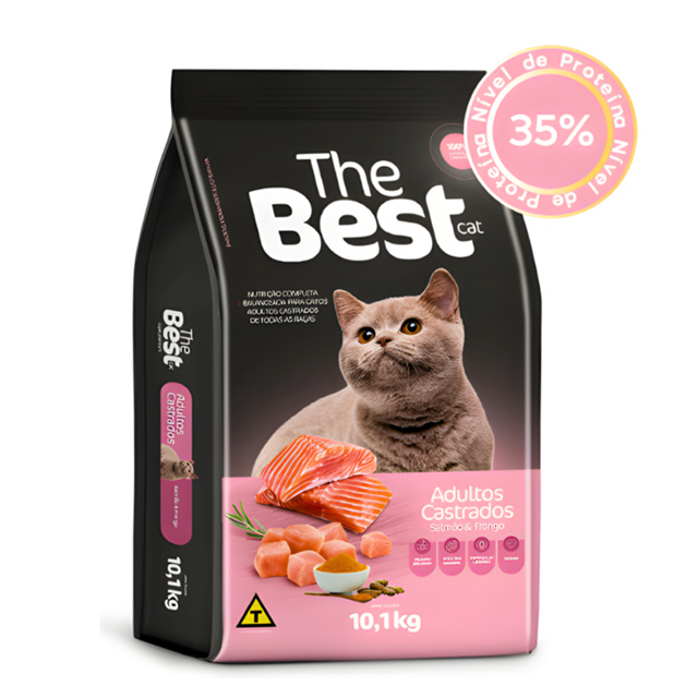 Ração The Best Cat Gatos Castrados Frango e Salmão 10,1kg 35% Proteína Controle de Peso e Urinário