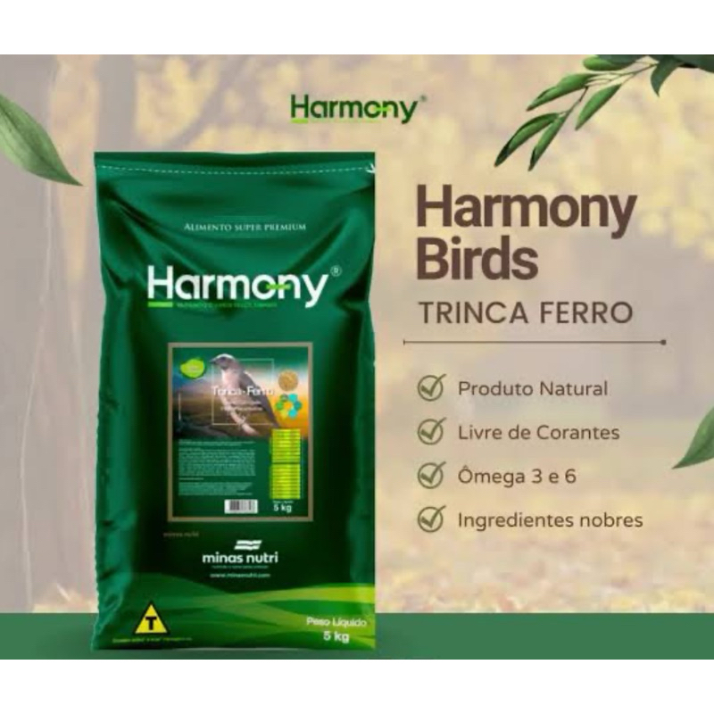 Harmony Birds Trinca-Ferro Natural Alimento Super Premium, extrusado e balanceado, desenvolvido cientificamente para a nutrição de trinca-ferros, sabiás, pássaros pretos, sanhaços e outros pássaros frugívoros e onívoros de pequeno porte. Formulado com níveis adequados de proteínas e fibras, este alimento ajuda a manter o sistema digestivo saudável e fornece a energia necessária para o comportamento ativo desses pássaros. Super Premium Extrusado Pássaros Onívoros 300g, 3kg