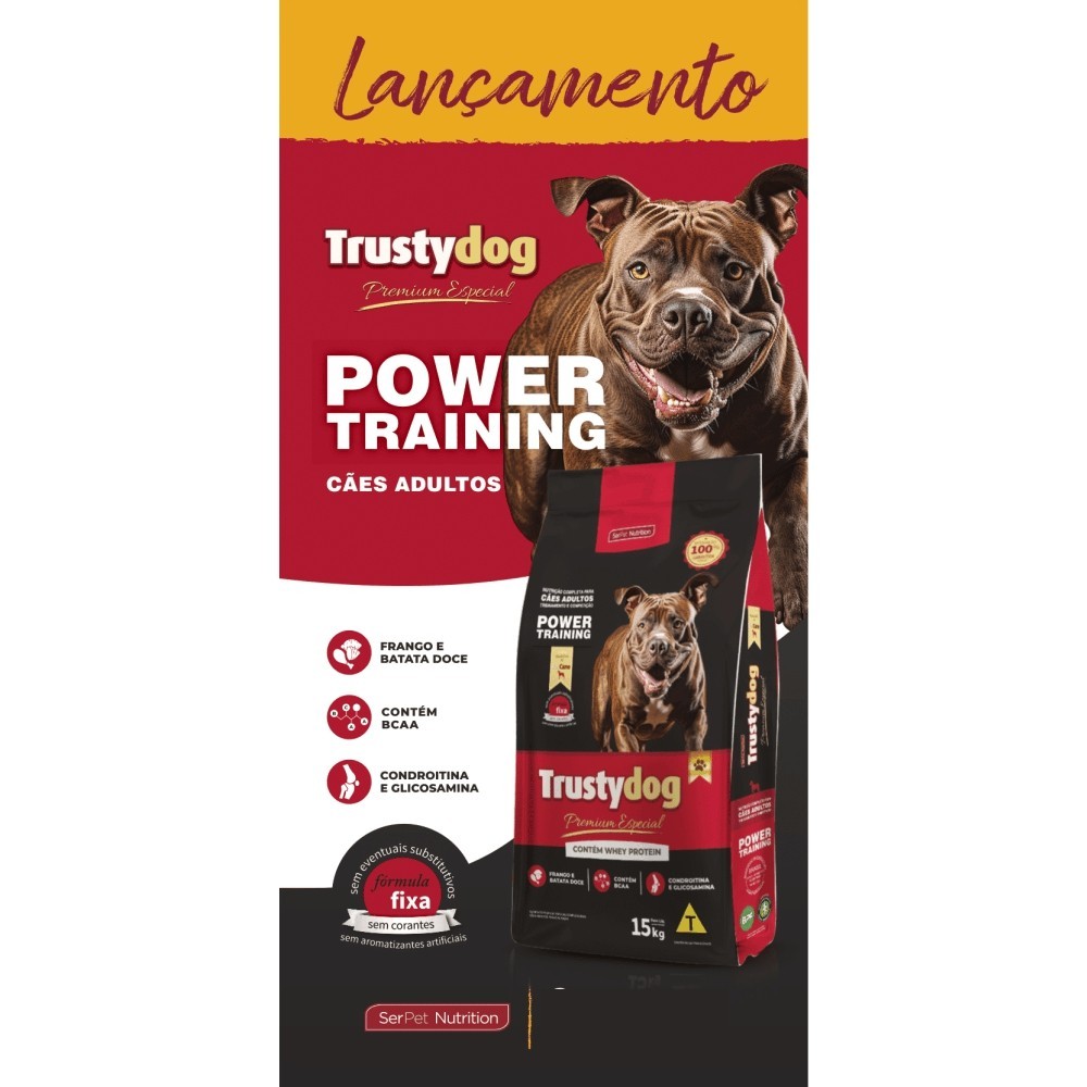 Ração Trusty Power Training Frango e Batata Doce Adulto 15kg – 26% Proteína Animal, Whey, BCAA