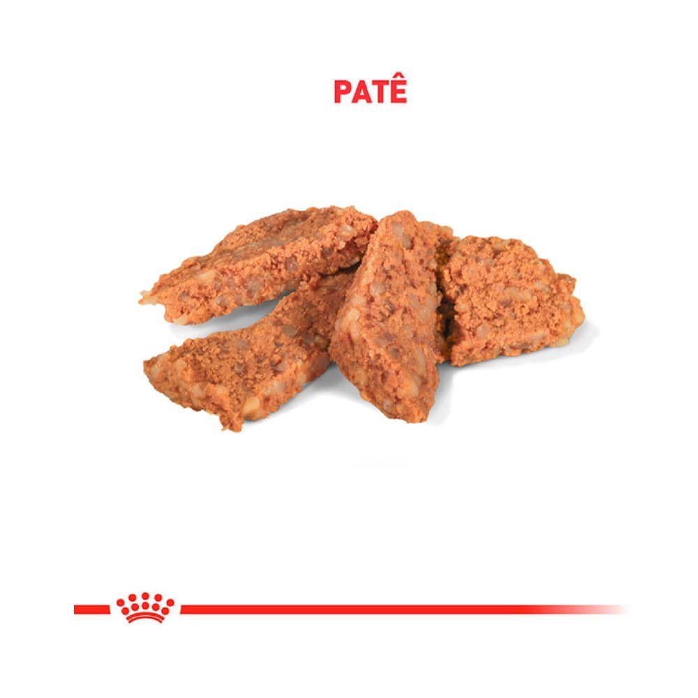 A Ração Úmida Royal Canin Gastrointestinal Cães Adultos é um alimento coadjuvante super premium, é indicada para cães adultos com sensibilidades gastrointestinais, como diarreias crônicas ou agudas, doença inflamatória intestinal, má digestão, má absorção, insuficiência pancreática exócrina, colite, gastrite, além de ser recomendada em casos de anorexia e períodos de convalescença. Possui ingredientes de alta digestibilidade e um teor equilibrado de fibras, essa dieta promove uma digestão eficiente e um trânsito intestinal saudável. Seu elevado teor energético ajuda a reduzir o volume das refeições, diminuindo a carga intestinal sem comprometer a nutrição necessária. Ingredientes Água, pulmão de suíno, vísceras de suíno, plasma sanguíneo desidratado de suíno, pescoço de frango sem pele, carne de salmão, quirera de arroz, fígado de frango, coração de frango, óleo de girassol refinado, celulose, polpa desidratada de beterraba, óleo branqueado e desodorizado de peixes, farinha de marigold, carbonato de cálcio, cloreto de potássio, óxido de magnésio, tripolifosfato de sódio, carbonato de sódio, zeolita, goma alfarroba, carragena, mananoligossacarídeos, ácido cítrico, ácido ascórbico (vitamina C), colecalciferol (vitamina D3), acetato de dl-alfa tocoferol (vitamina E), cloridrato de tiamina (vitamina B1), riboflavina (vitamina B2), cloridrato de piridoxina (vitamina B6), cianocobalamina (vitamina B12), ácido nicotínico (niacina), D-pantotenato de cálcio, ácido fólico, biotina, cloreto de colina, sulfato de zinco, sulfato de ferro, sulfato de cobre, sulfato de manganês, iodato de cálcio, zinco aminoácido quelato, manganês aminoácido quelato, cobre aminoácido quelato, taurina.