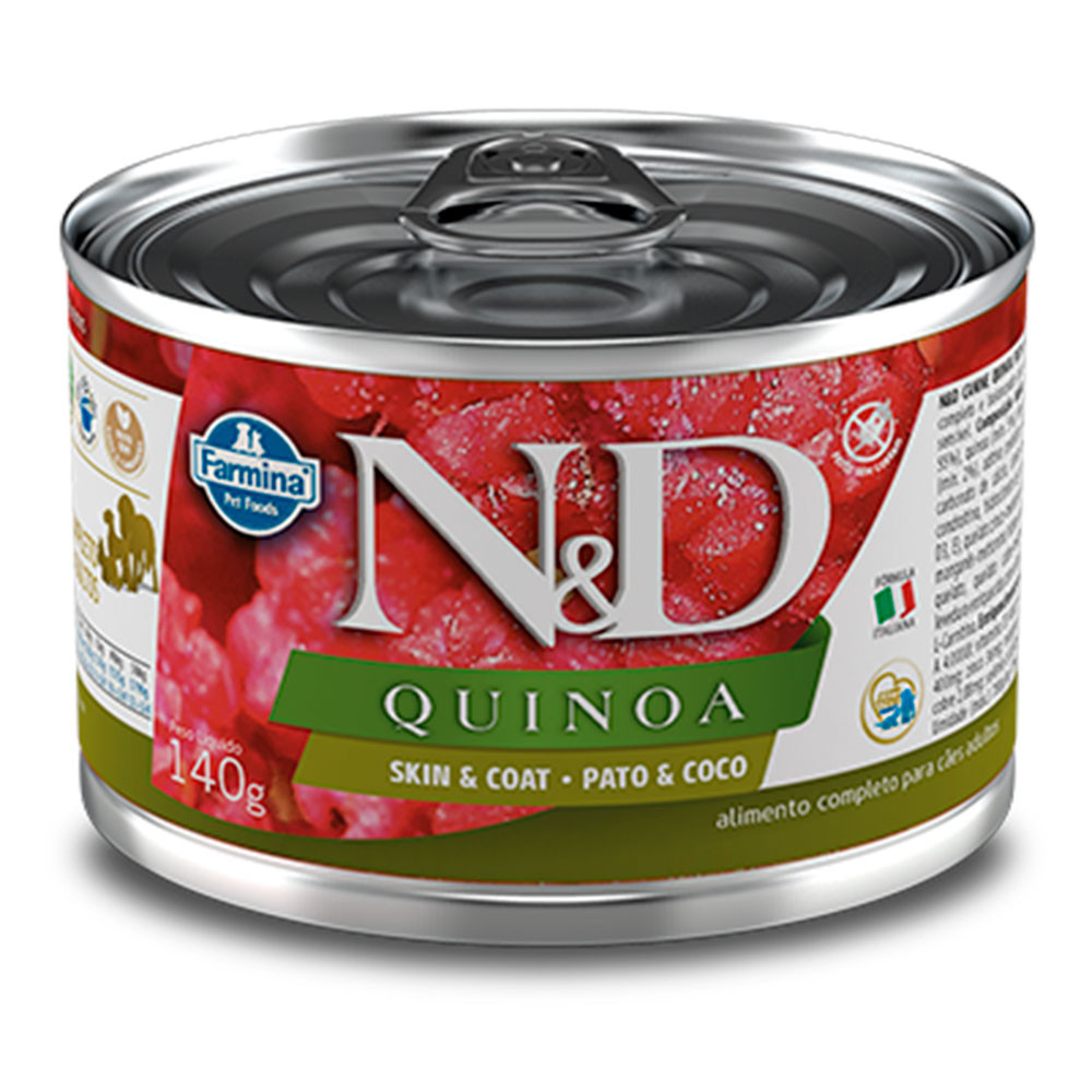 | Ração Úmida N&D Quinoa Cães Skin&Coat Pato - 140g este produto | R$ 30,88 | 5% | — | 1 |