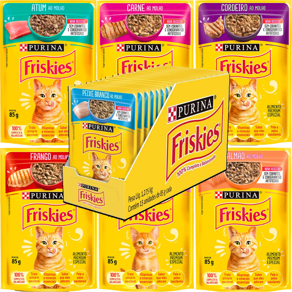 Ração Úmida Nestlé Purina Friskies Sachê para Gatos 85g Caixa Fechada Com 15, 12 e 10 Variados