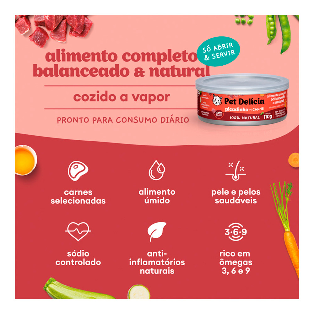 Ração Úmida Para Gatos Adultos Pet Delícia Picadinho de Carne 110g