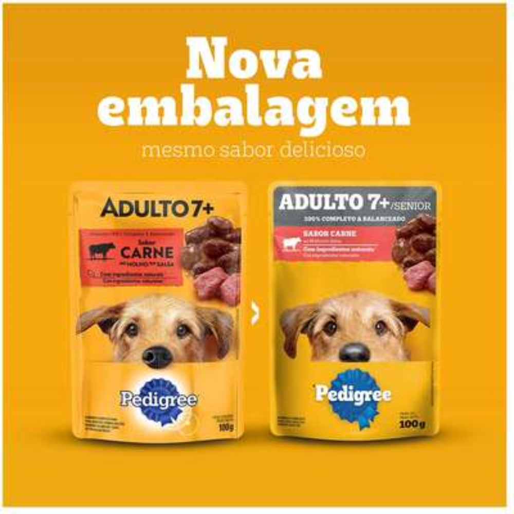 Ração Úmida Pedigree Carne ao Molho para Cães Adultos Sênior 7+ 100g - 36 Unid.