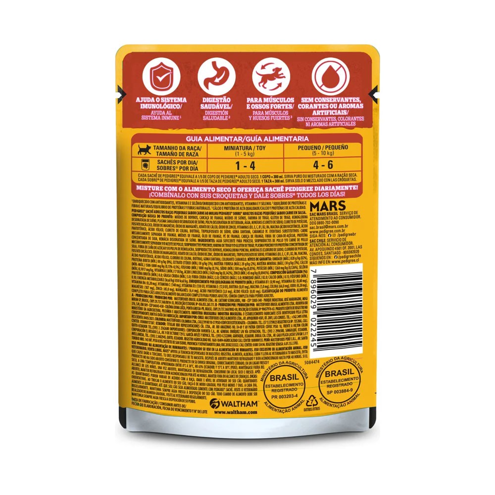 Ração Úmida Pedigree Sachê Carne ao Molho para Cães Adultos de Raças Pequenas 100g - 18 Unidades Todas as informações divulgadas são de responsabilidade do fabricante/fornecedor Prazo de Validade: Vide Impresso na Embalagem Observações: Imagem meramente ilustrativa