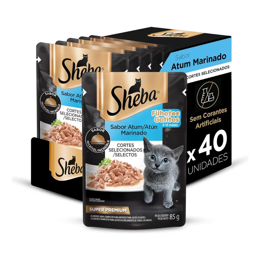 Catalogado na subcategoria Ração para Gatos (de Animais Domésticos), Ração Úmida Sheba Atum Marinado para Gatos Filhotes 85g - 40 Unid. está à venda na Shopee Brasil por R$ 150,40.