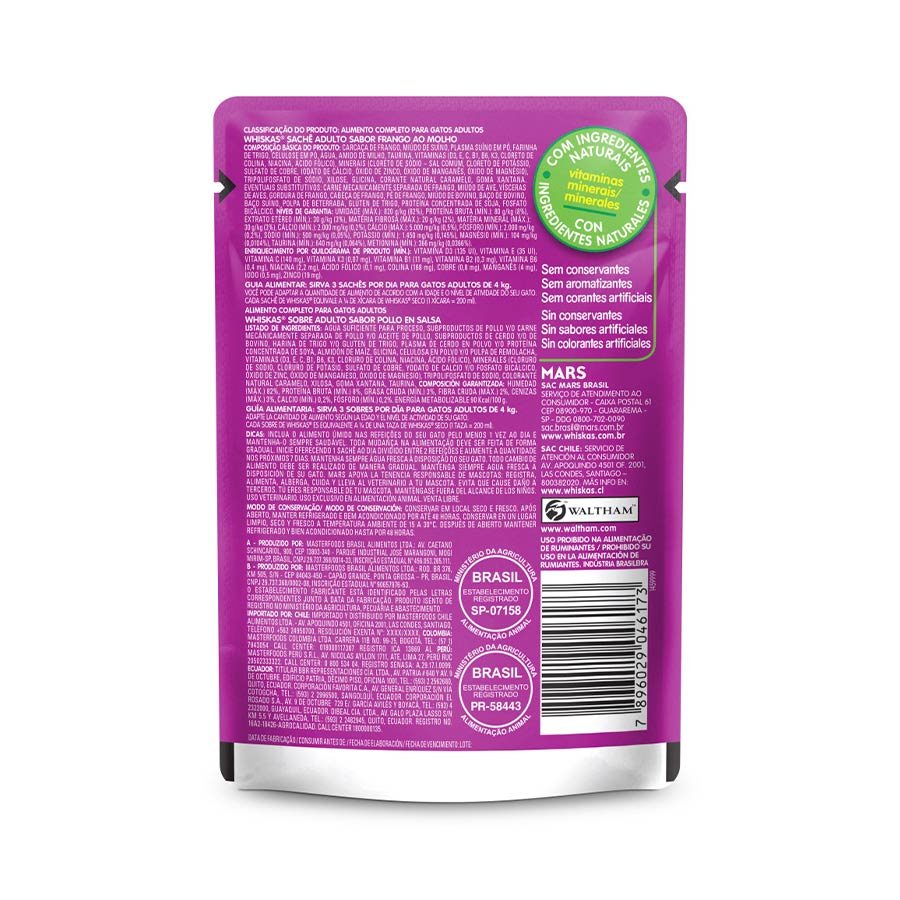 Ração Úmida Whiskas Sachê Gatos Adultos Frango ao Molho 85g