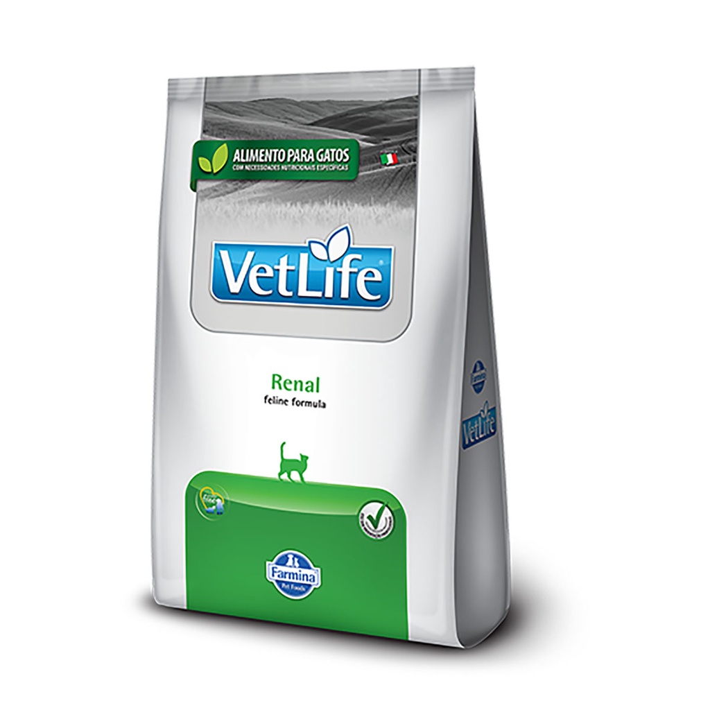 Ração Vet Life Gatos Renal 7.5kg - Indicada para gatos com doença renal ou insuficiência renal crônica; - Teor reduzido de fósforo para aliviar a carga nos rins comprometidos; - Presença de antioxidantes para proteção das células renais; - Enriquecida com ômega-3 para promover a saúde renal e a qualidade da pele e pelagem. A ração possui uma composição cuidadosamente selecionada para auxiliar no suporte renal dos gatos, ela contém teor reduzido de fósforo, o que é importante para ajudar a aliviar o trabalho dos rins comprometidos. Além disso, também é formulada com teor controlado de proteína de alta qualidade, o que pode ser benéfico para gatos com doença renal, já que o excesso de proteína pode sobrecarregar os rins. A presença de antioxidantes na ração Vet Life Gatos Renal 7.5kg contribui para a proteção das células dos rins, auxiliando no combate ao estresse oxidativo, comum em gatos com doença renal. Composição Farinha de vísceras de aves, farelo de glúten de milho, milho integral moído, quirera de arroz, gordura de frango, farelo de soja, óleo de peixe refinado, polpa de beterraba, levedura seca de cervejaria, cloreto de potássio, fosfato bicálcico, floreto de sódio (sal comum), taurina, antioxidantes naturais (como tocoferóis mistos), vitaminas (A, D3, E, K3, B1, B2, B6, B12, C, biotina, niacina, ácido pantotênico, ácido fólico), minerais (zinco aminoácido quelato, sulfato de ferro, sulfato de cobre, sulfato de manganês, iodato de cálcio, selenito de sódio).
