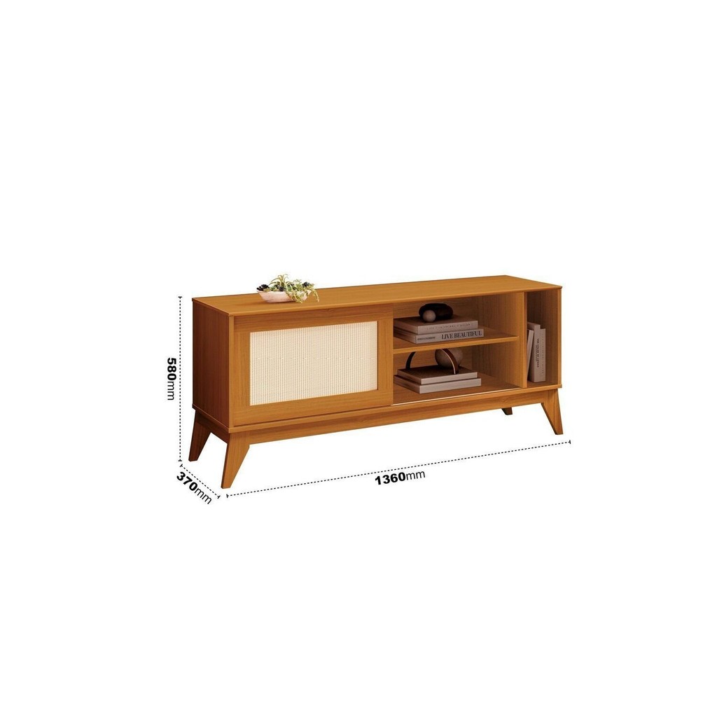 Rack 100% MDF para Tv 55 Polegadas com Acabamento em Tela Rathan Cayman Cedro