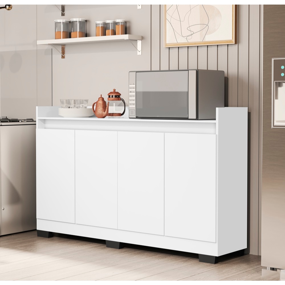 APARADOR RYZEN 4 PORTAS Se você ama deixar cada cantinho da sua casa com aquele toque especial de elegância e praticidade, o aparador RYZEN foi feito pra você. Ideal para quem valoriza ambientes organizados sem abrir mão do design moderno, ele une funcionalidade e charme em um só móvel. Já imaginou um móvel que além de decorar, ainda ajuda a manter tudo no lugar? O RYZEN é exatamente isso: ideal para salas, halls, escritórios ou qualquer cantinho que precise de mais praticidade e beleza. Ele conta com 4 portas e 2 prateleiras internas, oferecendo excelente espaço para guardar objetos decorativos, louças, documentos ou o que você precisar. Produzido em MDP com pintura UV, o RYZEN tem acabamento de qualidade, é resistente e fácil de limpar. Seu design moderno e discreto combina com diversos estilos de decoração. Medidas do Produto Montado: Altura: 96 cm Largura: 113,5 cm Profundidade: 38 cm Características do produto: Produzido em MDP de alta qualidade 4 Portas 2 prateleiras internas Pintura UV Conteúdo da Embalagem: 1 Aparador kit de montagem manual de montagem Observações: Limpeza com pano macio e levemente umedecido, não utilizar material áspero e não utilizar solventes a base de inflamáveis; Imagem meramente ilustrativa. Os objetos que ambientam as fotos não acompanham o produto As cores do produto podem sofrer variações de tonalidade de acordo com as configurações do seu dispositivo; Produto entregue desmontado. Todos os nossos móveis possuem manual de montagem com passo a passo para você ou seu profissional de confiança montá-lo; Verifique a complexidade antes de decidir montá-lo sozinho; ANTES DE MONTAR O SEU PRODUTO, certifique-se que todas as instruções dispostas no manual, bem como todas as ferragens descritas, estejam presentes dentro da embalagem. Verifique se há alguma peça avariada, caso necessário, prestaremos a devida assistência dentro do prazo da garantia. Garantia: 03 meses para defeitos de fabricação. Agradecemos sua visita à nossa loja. Estamos aqui para ajudar você a criar o lar dos seus sonhos! *************************************************************** NÃO FAZEMOS TROCA DE COR APÓS A COMPRA. ***************************************************************