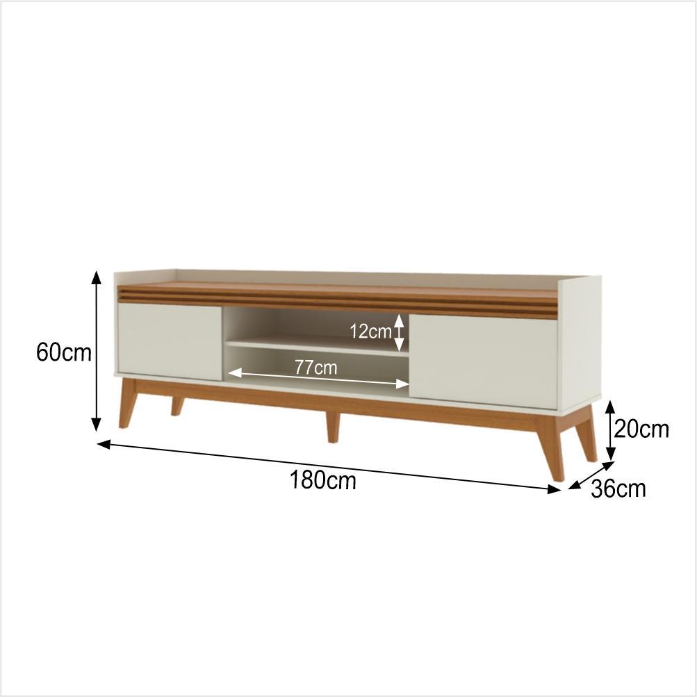 Rack para TV até 75” – Modelo Astúrias 180cm | Estilo Retrô Moderno Deixe sua sala ainda mais elegante e organizada com o Rack Astúrias! Um móvel que une design moderno com toque retrô, perfeito para valorizar seu ambiente. Destaques do produto: Suporta TVs de até 75 polegadasDesign sofisticado com detalhe frontal ripadoAmplo espaço interno para eletrônicos e decoração2 Portas com dobradiças metálicasPrateleira central funcionalPuxadores usinados de alta qualidadePés estilo retrô em MDF Dimensões: Largura: 180 cm Altura: 60 cm Profundidade: 36 cm Material: Estrutura em MDP/MDF Acabamento com pintura UV (mais durabilidade e resistência) Ideal para quem busca praticidade, organização e um toque de sofisticação na sala! Observações Importantes: - Produto não deve ficar exposto diretamente ao sol, calor e umidades excessivas. - Recomendações de Limpeza: Utilize somente pano seco ou levemente umedecido. - O produto pode sofrer alterações de tonalidade conforme o seu monitor. - Imagens meramente ilustrativas, produto não acompanha objetos de decoração e eletrônicos. - Ao receber, verifique a embalagem. - Não nos responsabilizamos, no ato da entrega, por subir escadas/elevadores. - A montagem do produto é de responsabilidade do cliente. Para garantir a qualidade e a sua segurança, recomendamos fortemente a contratação de um montador profissional. Não cobrimos danos causados por erros de montagem.