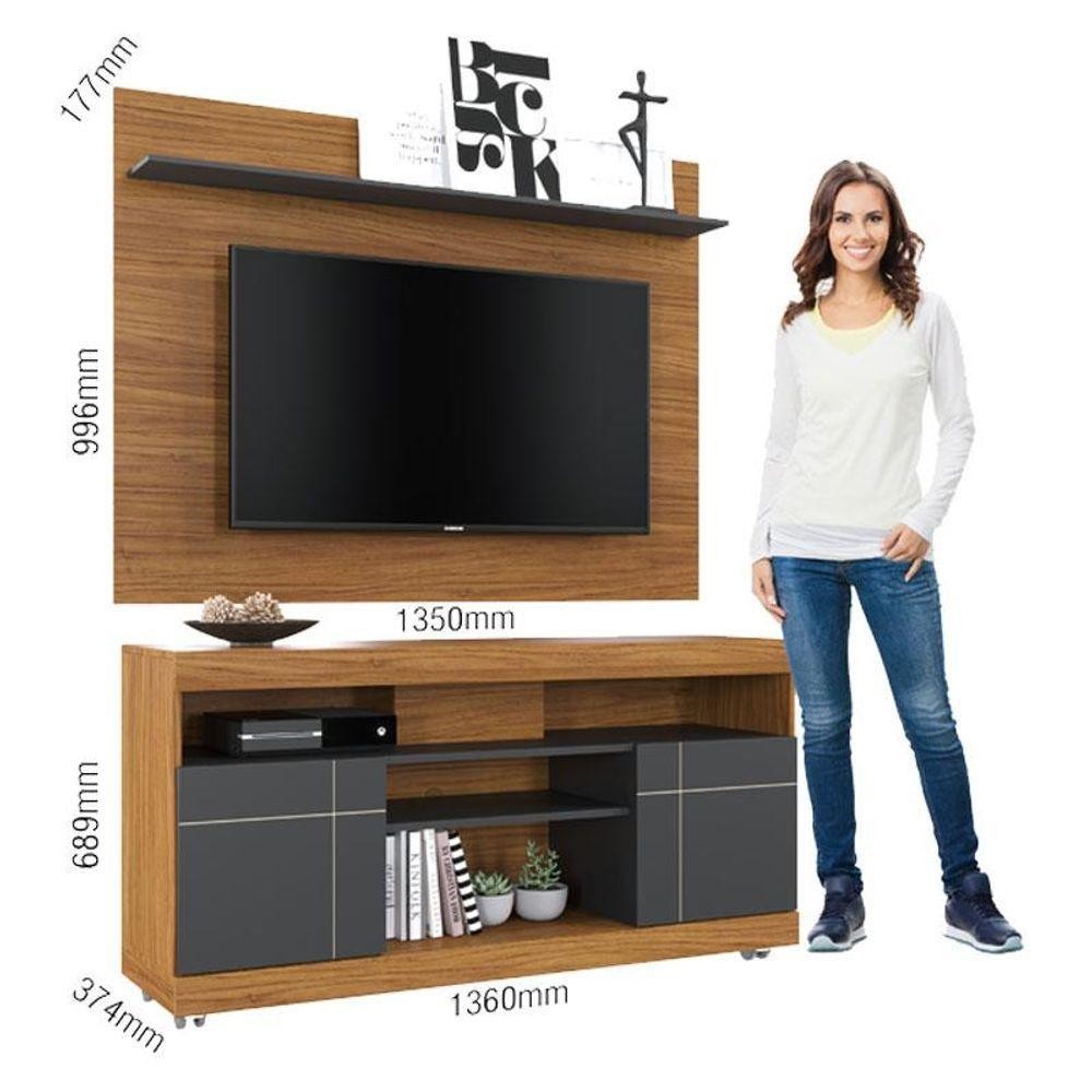Rack Bancada Ambiente Yara E Painel Para Tv Maia Noce Milano Preto Acetinado - Colibri