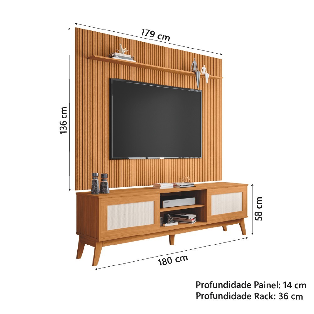 Rack Bancada Cairo Com Painel Para TV Até 75 Polegadas 1,79m Avante Cedro Ripado Impressão 3D EDN