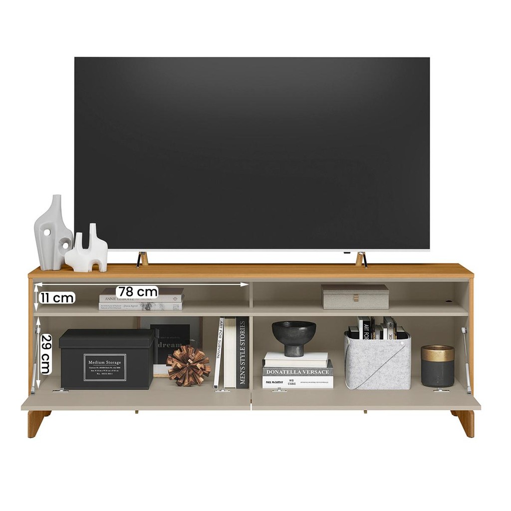 Explore elegância com o Rack Dubai. Pés de madeira maciça chanfrado detalhe que faz a diferença, este rack não apenas oferece funcionalidade excepcional, mas também adiciona um toque de sofisticado ao seu ambiente. Experimente a excelência em qualidade e o design impecável que o Rack Dubai oferece, elevando o estilo do seu espaço. Modelo: Rack Dubai 1.6; Material da estrutura: MDP/MDF de 12 mm e 15 mm com pés em madeira maciça; Dimensões: 160 cm(L) x 59 cm(A) x 38 cm(P); Tamanho máximo de TV: até 70” Polegadas; Espaço útil para tv no tampo: 160 cm (L) x 38 cm (P); Quantidade de portas: 02 basculantes (dobradiças metálicas com pistão a gás); Com puxador: sim, em alumínio; Quantidade de nicho: 02; Peso suportado: até 45 kg distribuídos; Requer montagem: Sim (kit montagem incluso); Tonalidade das Cores: Tauari: Fosco; Off White Fosco: Fosco. Informações adicionais: - Os objetos que ambientam as fotos não acompanham o produto; - É de inteira responsabilidade do cliente a montagem do produto e/ou instalação, assim como possíveis irregularidades provenientes de manuseio inadequado; - Embora o produto acompanhe o manual de montagem, verifique a complexidade antes de decidir montá-lo sozinho, recomendamos que contrate um profissional de sua confiança; - Fique atento, nossas cores podem sofrer alterações dependendo do seu monitor; - ANTES DE MONTAR O SEU PRODUTO, verifique se há alguma peça danificada, caso esteja, prestaremos a devida assistência dentro do prazo da garantia.