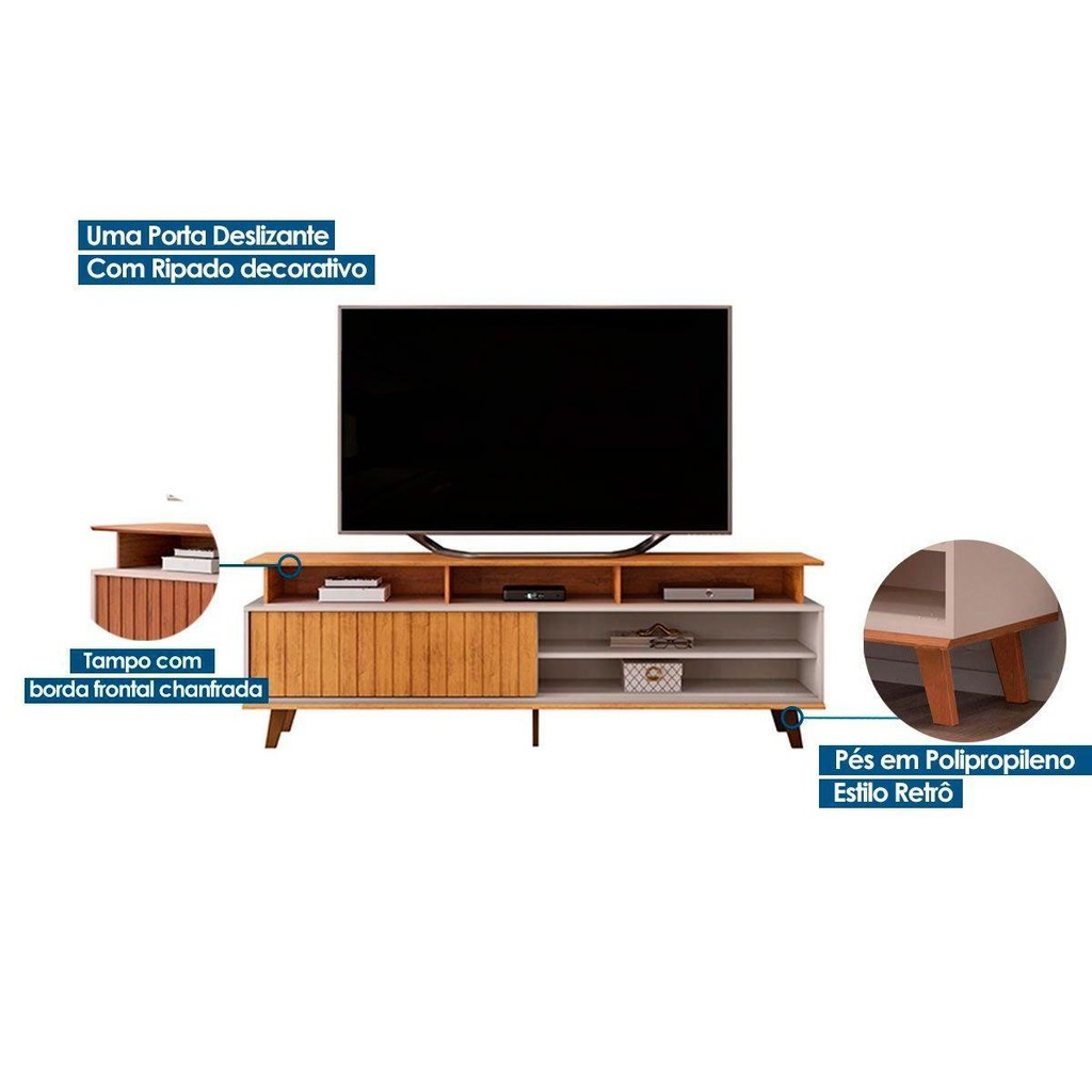 Rack Bancada p/ TV até 70 Pol Flow Ripado c/ 1 Porta 180x60cm Cedro/Bali - DJ Móveis
