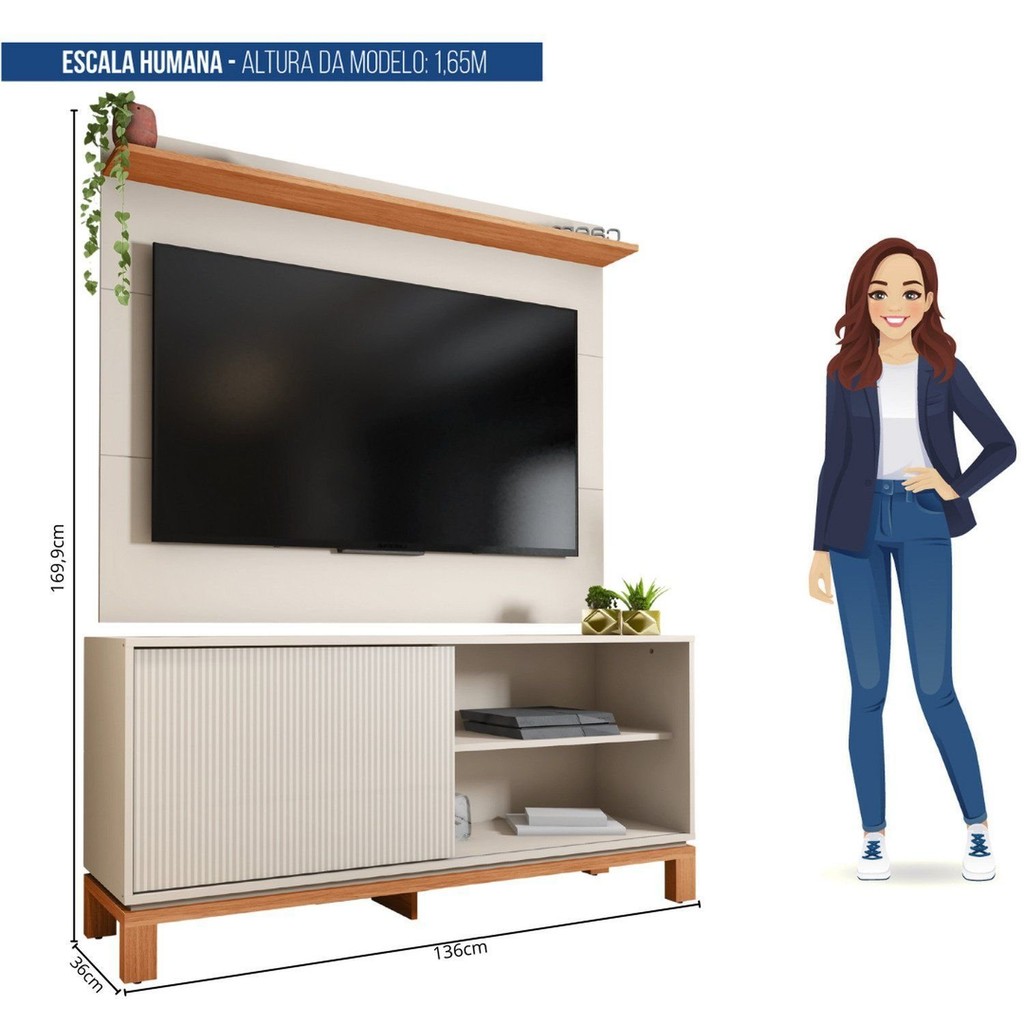 Rack com Painel para Tv 55 Polegadas Ripado Mondrian Off White/Freijó Off White/Freijó