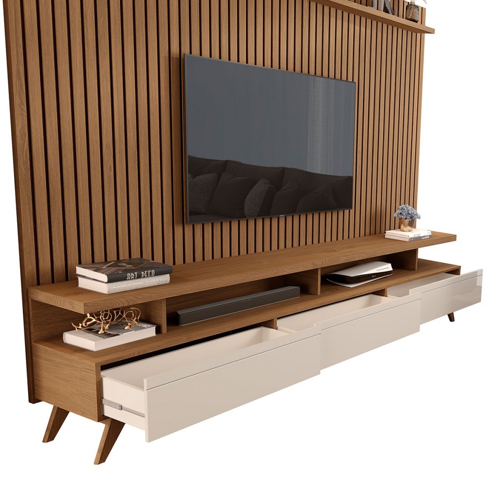 Rack com Painel Para TV 72 Polegadas Vivare 3 Gavetas Ripado - Giga Móveis