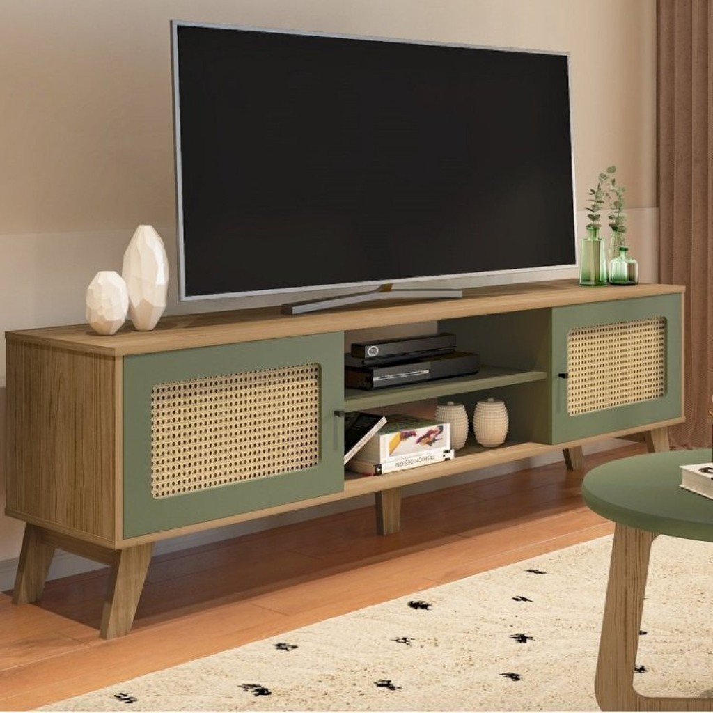Rack com Painel para TV até 60 Pol Universal Memphis Carvalho/Menta
