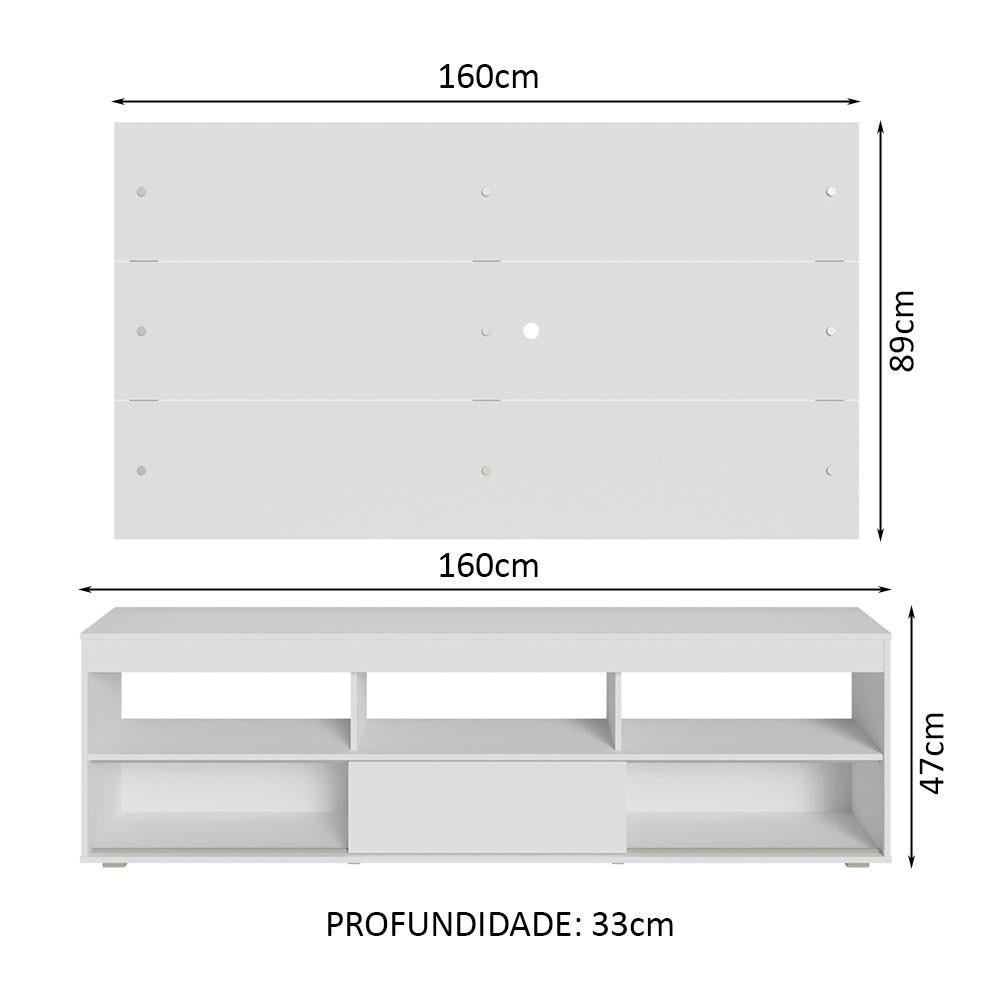 Deixe sua sala de jantar mais funcional e moderna com o conjunto de Rack e Painel para TV Orlando, da Madesa. Com design prático e focado na otimização dos espaços, o rack possui cinco compartimentos abertos e uma porta deslizante, ideais para acomodar objetos decorativos e dispositivos eletrônicos. O painel comporta TV de até 65 polegadas e pode ser ajustado em altura, proporcionando maior flexibilidade na hora da instalação. Além disso, possui passagem de cabos integrada, para melhor organização dos fios dos aparelhos. Por fim, os móveis contam com um acabamento branco feito com Pintura Poliéster sustentável. O processo consiste na aplicação de sete camadas que oferecem resistência e durabilidade. Itens inclusos: - Um (1) Rack de 47 cm de altura x 160 cm de largura x 33 cm de profundidade - Um (1) Painel de 89 cm de altura x 160 cm de largura Código do produto: 700409 Obs: - Imagens meramente ilustrativas - A Madesa não disponibiliza serviço de montagem - O produto segue com manual e todas as ferragens necessárias para a montagem 1 – O produto vem montado? Se não, vocês realizam a montagem? R.: A Madesa não disponibiliza serviço de montagem. Todos os produtos seguem com manual de instalação e as ferragens necessárias. Alguns produtos possuem vídeo explicando o passo a passo da montagem. 2 – Vocês possuem loja física? Posso retirar meu produto em mãos? R.: Não possuímos loja física, apenas loja virtual. Confira as opções de envio ao colocar o seu CEP. 3 – Qual é o valor do envio? Posso pagar separadamente? R.: O valor do envio é calculado com base no peso e volume do produto, e no CEP de destino. Você pode calcular o valor e prazo de entrega no simulador. 4 – A Madesa entrega em todo Brasil? Como é feita a entrega? R.: Sim, entregamos no Brasil inteiro através de transportadoras parceiras. 5 – Os produtos possuem garantia? R.: Sim. A Madesa oferece 3 meses de garantia para defeitos de fabricação. A Madesa possui compromisso com a sustentabilidade. Geramos energia limpa em nossa própria usina, priorizamos fornecedores responsáveis e utilizamos plástico reciclado em nossa produção. Além disso, reinserimos sobras no ciclo de reciclagem e investimos no desenvolvimento de nossos colaboradores e da comunidade. Garantia: Este produto conta com 1 ano de garantia total, sendo 3 meses de garantia legal e 9 meses de garantia contratual. A garantia cobre exclusivamente defeitos de fabricação e vícios ocultos. Não estão cobertos: problemas decorrentes de montagem incorreta, uso inadequado, exposição à umidade, calor ou luz solar direta, modificações no produto ou desgaste natural.