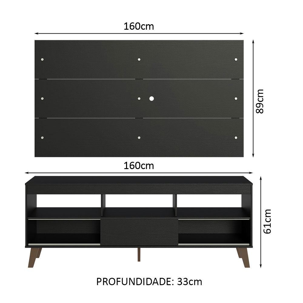 Conheça o Rack com Painel para TV Texas da Madesa, o conjunto que vai transformar a sua sala de estar! Moderno e funcional, o rack oferece cinco nichos espaçosos e uma porta deslizante, proporcionando ampla área para organizar objetos decorativos, dispositivos eletrônicos e tudo mais que você desejar. Outro detalhe interessante sobre o rack são os pés, que aumentam a altura do móvel, oferecem ótima estabilidade e deixam o conjunto ainda mais elegante. O painel suporta televisores de até 65 polegadas. É destacado do rack, permitindo ajustar a altura conforme sua preferência. Além disso, conta com um espaço dedicado para passagem de cabos, auxiliando na organização. Ambas as peças possuem acabamento preto, feito com Poliéster Protetor em 7 camadas, garantindo durabilidade e qualidade. Além disso, o processo é ecologicamente correto, livre de vapores prejudiciais à atmosfera. Itens inclusos: - Um (1) Rack de 61 cm de altura x 160 cm de largura x 33 cm de profundidade - Um (1) Painel de 89 cm de altura x 160 cm de largura Código do produto: MDES0200168N5Z Obs: - Imagens meramente ilustrativas - A Madesa não disponibiliza serviço de montagem - O produto segue com manual e todas as ferragens necessárias para a montagem 1 – O produto vem montado? Se não, vocês realizam a montagem? R.: A Madesa não disponibiliza serviço de montagem. Todos os produtos seguem com manual de instalação e as ferragens necessárias. Alguns produtos possuem vídeo explicando o passo a passo da montagem. 2 – Vocês possuem loja física? Posso retirar meu produto em mãos? R.: Não possuímos loja física, apenas loja virtual. Confira as opções de envio ao colocar o seu CEP. 3 – Qual é o valor do envio? Posso pagar separadamente? R.: O valor do envio é calculado com base no peso e volume do produto, e no CEP de destino. Você pode calcular o valor e prazo de entrega no simulador. 4 – A Madesa entrega em todo Brasil? Como é feita a entrega? R.: Sim, entregamos no Brasil inteiro através de transportadoras parceiras. A Madesa possui compromisso com a sustentabilidade. Geramos energia limpa em nossa própria usina, priorizamos fornecedores responsáveis e utilizamos plástico reciclado em nossa produção. Além disso, reinserimos sobras no ciclo de reciclagem e investimos no desenvolvimento de nossos colaboradores e da comunidade. Garantia: Este produto conta com 1 ano de garantia total, sendo 3 meses de garantia legal e 9 meses de garantia contratual. A garantia cobre exclusivamente defeitos de fabricação e vícios ocultos. Não estão cobertos: problemas decorrentes de montagem incorreta, uso inadequado, exposição à umidade, calor ou luz solar direta, modificações no produto ou desgaste natural.