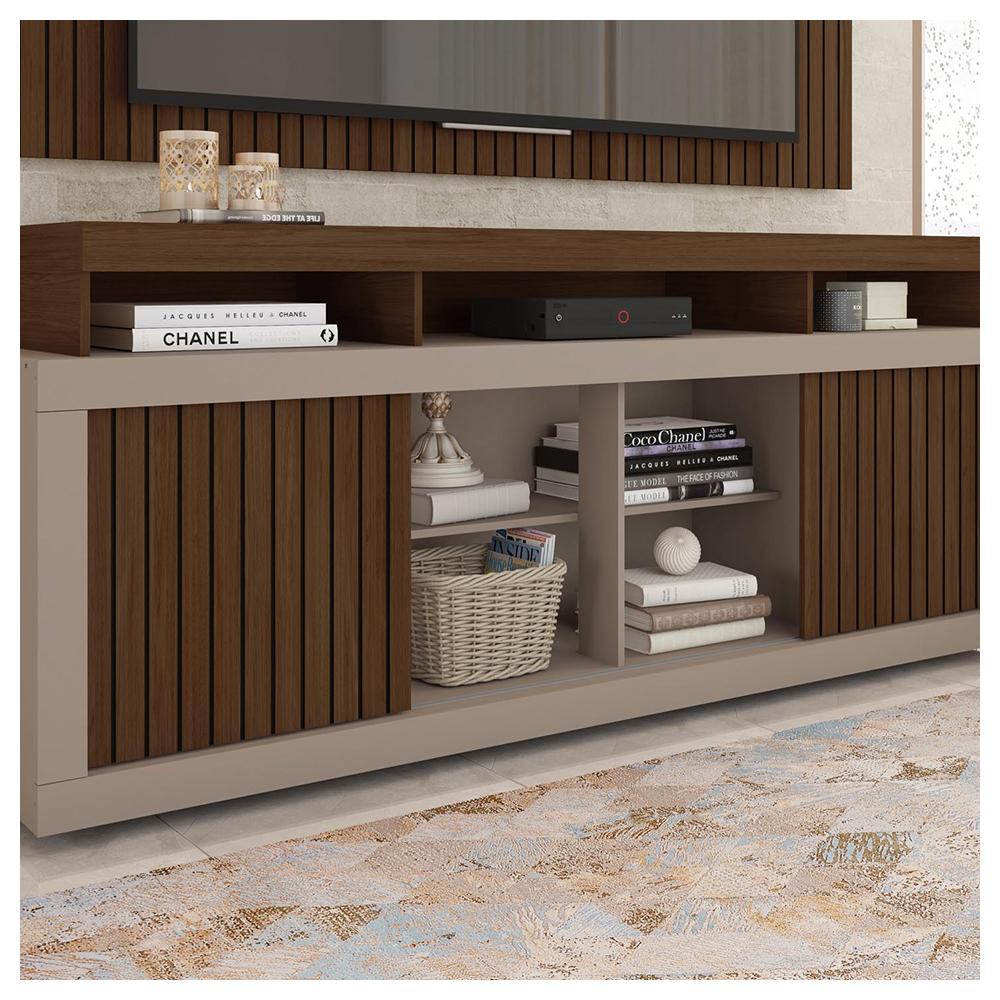 A composição Life é elegante, sofisticado e deixará sua sala ainda melhor. Ideal para TV's de até 65 Polegadas além de ser uma ótima opção para armazenamento de objetos da sua escolha. Feito em MDP e MDF contém maior resistência e durabilidade ao móvel. Dimensões dos Produtos Painel: - Peso: 23,55 kg; - Altura: 100 cm; - Largura: 168 cm; - Profundidade: 15,1 cm. Rack: - Peso: 36,50 kg; - Altura: 73,4 cm; - Largura: 180,0 cm; - Profundidade: 39,5 cm. Características Técnicas: - Possui 6 Rodas; - Possui 5 Nichos; - Possui 4 Prateleiras; - Possui 2 Portas De Correr; - Tonalidade do Produto: Fendi/ Havana; - Estrutura em MDP de 12mm e 15mm de espessura, MDF de 12mm de espessura. Peso Suportado: - Base 5 kg; - Painel 25 kg; - Tampo 25 kg; - Prateleira 3 kg. - Acompanha manual de montagem; - Garantia 90 dias contra defeito de fabricação; - Este móvel chegará em sua casa separado em 1 volume. Dimensões do Volume: - Altura: 12,8 cm; - Largura: 185,5 cm; - Comprimento: 46,5 cm. Recomendações de limpeza: - Limpar com pano macio, seco ou úmido, sem uso de produtos abrasivos. Pois, podem trazer danos ao produto. Sobre a entrega: - As transportadoras contratadas, não realizam entregas em apartamentos. Realizando assim a entrega na portaria do prédio. *Produto segue desmontado, montagem por conta do comprador; *Imagens do produto são meramente ilustrativas; *Painel Ripado Decorativo em Finish Foil, feito em chapa revestida com acabamento imitando ripado de forma realista.