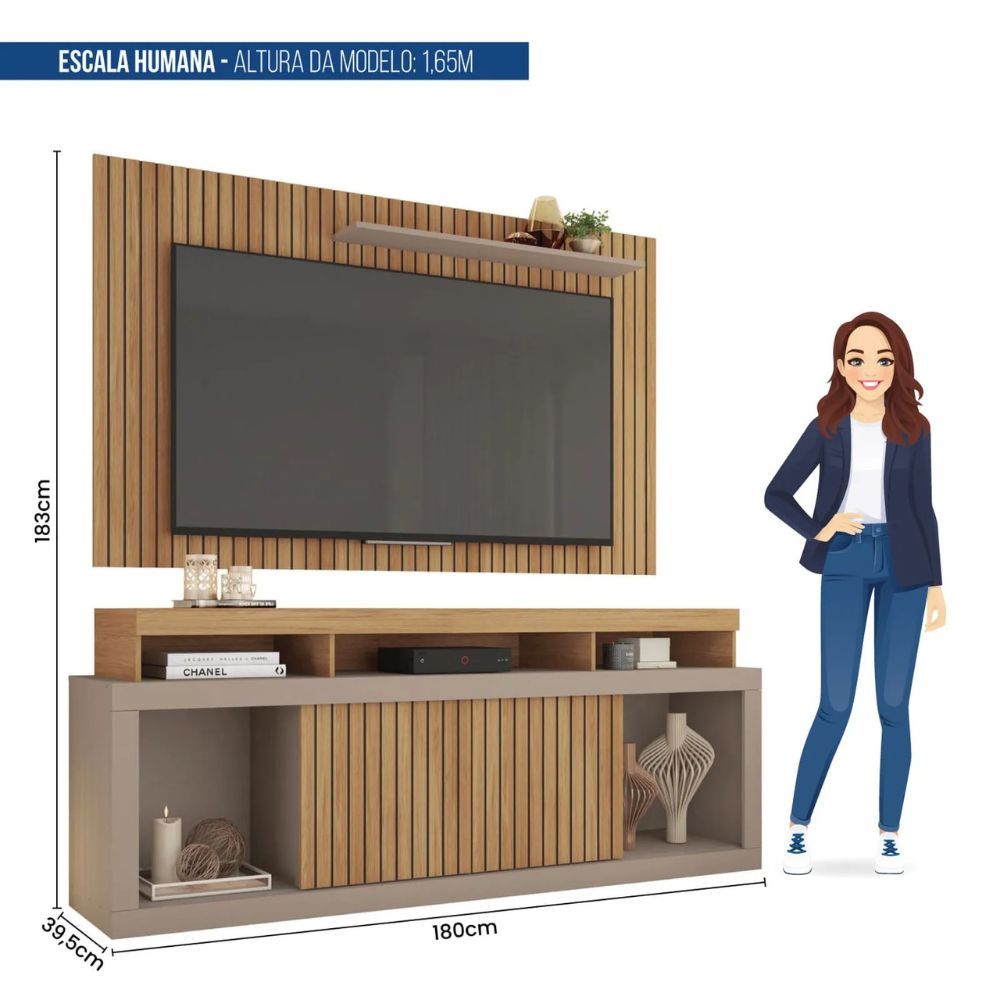 Rack Com Painel Para TV Até 65 Polegadas New Oscar Caemmun 1,8