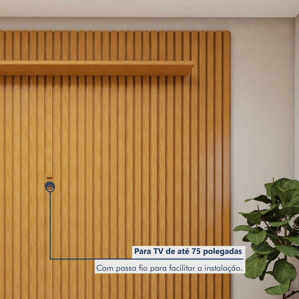 Nosso conjunto veio para transformar qualquer ambiente em um espaço sofisticado e acolhedor. O painel ripado destaca sua TV com um visual clean e moderno, enquanto o rack ripado oferece amplo espaço para organizar eletrônicos, decorações e muito mais. Ideal para quem quer praticidade sem abrir mão do estilo, esse conjunto de móveis para sala de estar renovará seu ambiente com personalidade e charme! Pode usar o painel de TV para quarto de casal? Sim. Também para quarto de solteiro ou hall de entrada. O painel de TV é fácil de instalar? Sim. Em poucas etapas, sua sala já ganha um visual novo. É um painel ripado para TV grande? São para TV de até 75' Garantia: 03 Meses Altura (cm): 303.5 Acabamento: Pintura Largura (cm): 220 Possui Pés: Não Peso do Rack: 46.6 Possui Adega: Não Altura do Rack: 53.5 Peso do Painel: 90 Possui Gavetas: Não Possui Tomadas: Não Suporta Até (kg): 50 Largura do Rack: 220 Possui Espelhos: Não Profundidade (cm): 36.5 Altura do Painel: 250 Escala de Brilho: Fosco Acabamento Ripado: Ripado Real Material da Porta: MDF Possui Iluminação: Não Ambiente Principal: Sala de Estar Material Principal: MDF Possui Prateleiras: Sim Acabamento da Porta: Pintura Espessura do Painel: 19 Largura do Conjunto: 220 Profundidade do Rack: 36.5 Material da Prateleira: MDF Acabamento da Prateleira: Pintura Profundidade do Conjunto: 36.5 Tipo de Puxador da Porta: Embutido Escala de Brilho da Porta: Fosco Peso Máximo por Prateleira: 10 Ideal para TVs até (Polegadas): 75 Material do Puxador da Porta: MDF Escala de Brilho da Prateleira: Fosco Suporte de TV Universal Incluso: Não Tipo de Dobradiça/Corrediça da Porta: Metálica Marca: Mavaular Cor Flex: Não Cor: Naturalle Cor do Produto: Naturalle Itens Inclusos: 1 Painel Paris, 1 Rack Arezzo e manual de montagem e kit ferragens Cor Predominante: Marrom Quantidade de Prateleiras: 01 Prateleira