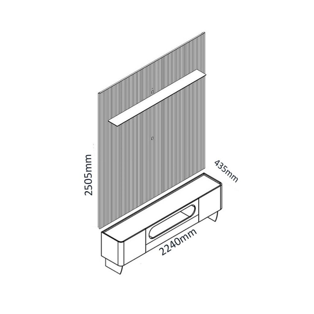 Rack com Painel Ripado para TV até 90 Polegadas 1 Gaveta 2 Portas LED Pés Vidro 220cm Requinte Nobre 100% MDF