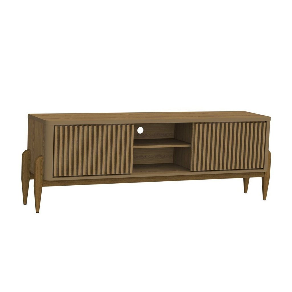 Rack com pés em madeira maciça para TV 55 Polegadas com Ripado 2 portas de correr 160mm Sereno Cedro