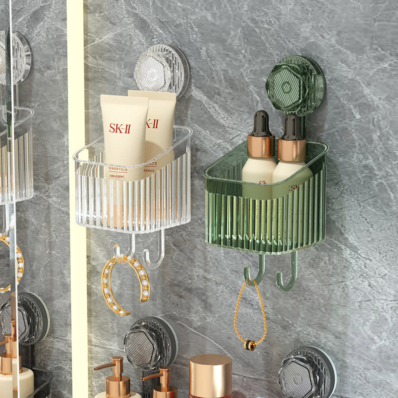 Caixa de armazenamento montada na parede com ventosa de instalação sem furos Instalação rápida/removível para lavagem/forte suporte de carga Tamanho grande: 29 cm * 10,7 cm * 10 cm Altura total 22cm, peso líquido 318g, material: PET Tamanho pequeno: 9cm * 9cm * 9.4cm Altura total 21cm, peso líquido 129 gramas, material: PET Cor: branco transparente/cinza transparente/verde transparente Método de instalação: Instalação de ventosa, adsorvida na parede. A parede precisa ser lisa e limpa. (Melhores condições: vidro/azulejo)