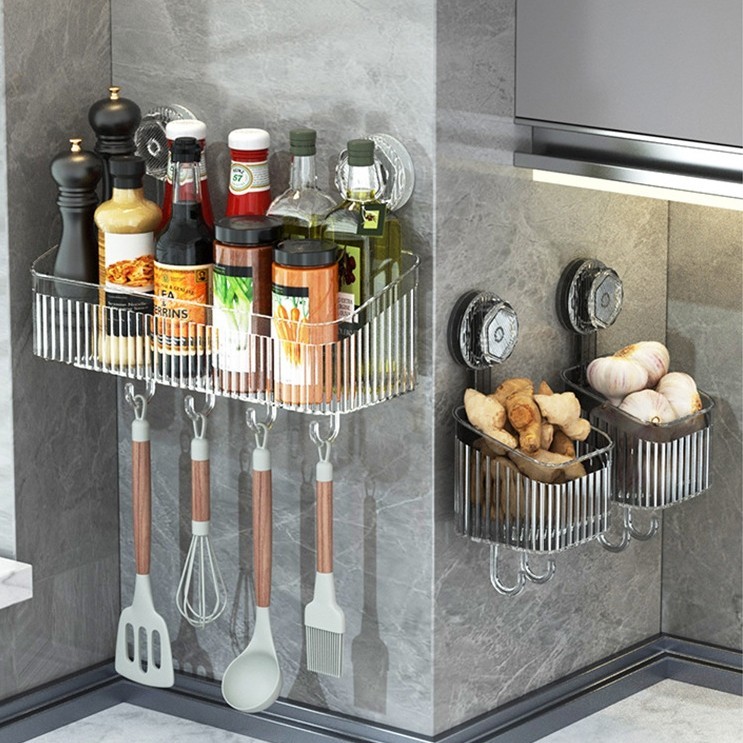 Rack de shampoo banheiro cozinha instalação de ventosa de plástico multiuso