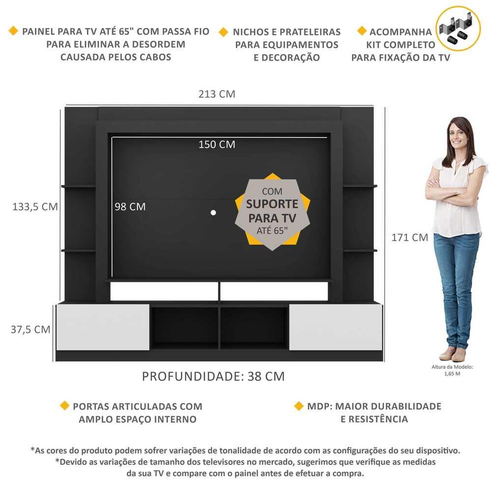 Rack Estante com Painel e Suporte TV 65" e 2 portas Oslo Multimóveis Preto/Branco