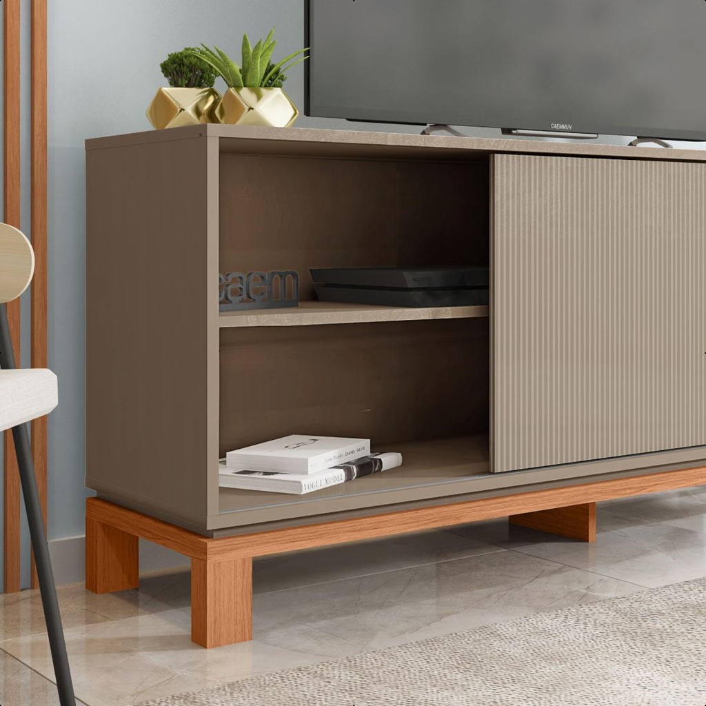 A Bancada Jace da Caemmun é a escolha perfeita para completar a sala de estar com um móvel moderno e funcional. Detalhe para a porta de correr com textura microrripada que se adapta a diversos estilos de decoração, enquanto os pés em cavalete com base elevada conferem um ar leve e contemporâneo. Ideal para televisores de até 45 polegadas se tornando a escolha perfeita para quem busca um móvel que segue as últimas tendências do mercado. Dimensões do Produto: - Peso: 25,2 kg; - Altura: 61,9 cm; - Largura: 136 cm; - Profundidade: 36 cm. Características Técnicas: - Possui 3 Nichos; - Possui 1 Prateleira; - Possui 1 Porta de Correr; - Tonalidade do Produto: Freijó/Sued; - Estrutura em MDF de 15mm, 25mm de espessura. HDF de 2,5mm de espessura. Peso Suportado: - Prateleira: 2 kg; - Parte superior: 20 kg; - Repartições inferior: 4 kg. - Acompanha manual de montagem; - Garantia de 90 dias contra defeito de fabricação; - Este móvel chegará em sua casa separado em 1 volume. Dimensões do Volume: - Altura: 8,8 cm; - Largura: 142,5 cm; - Comprimento: 45,2 cm. - Recomendações de limpeza: Limpar com pano macio, seco ou úmido, sem uso de produtos abrasivos, pois podem trazer danos ao produto. - Sobre a entrega: As transportadoras contratadas, não realizam entregas em apartamentos, realizando assim a entrega na portaria do prédio. *Produto segue desmontado, montagem por conta do comprador; *Imagens do produto são meramente ilustrativas.