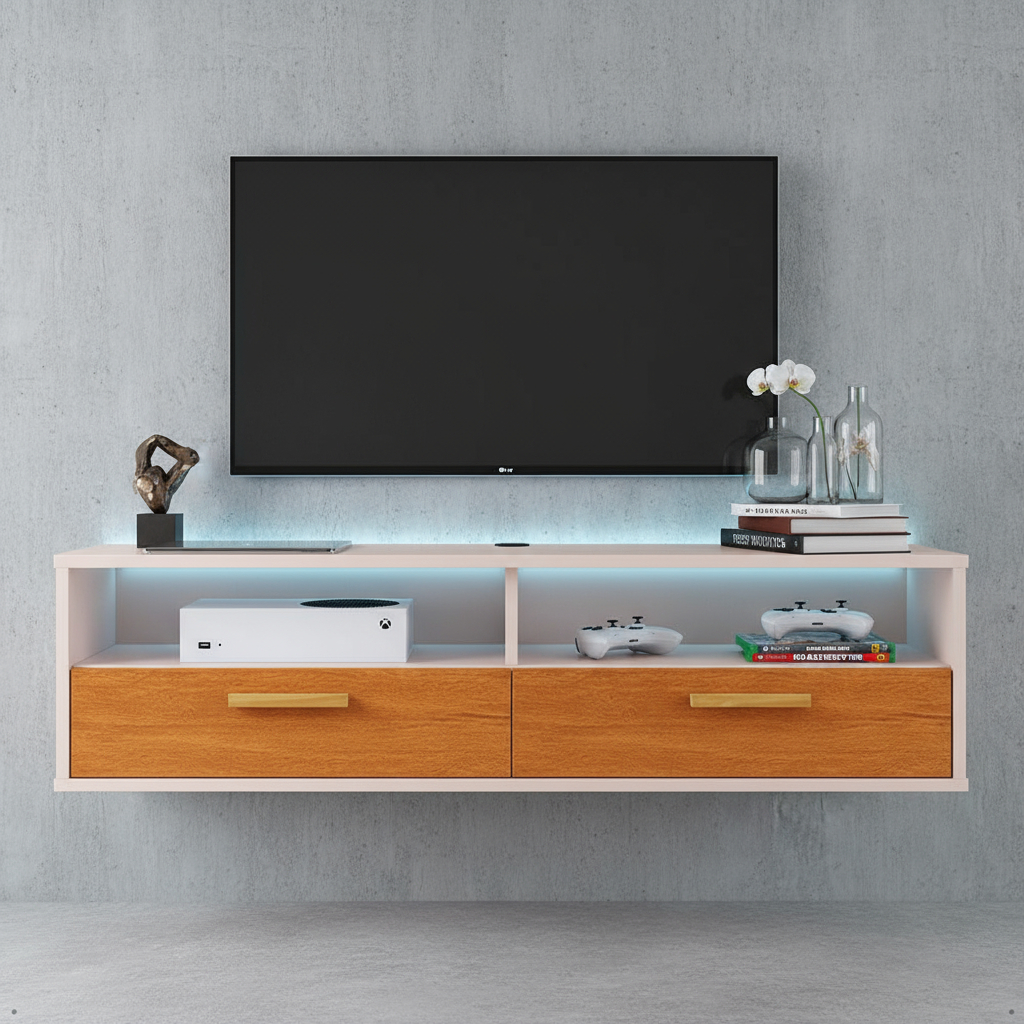 Rack Home Suspenso Copa / Turim com pés 2 Portas Nicho e Puxador de Madeira 110cm - GM Móveis