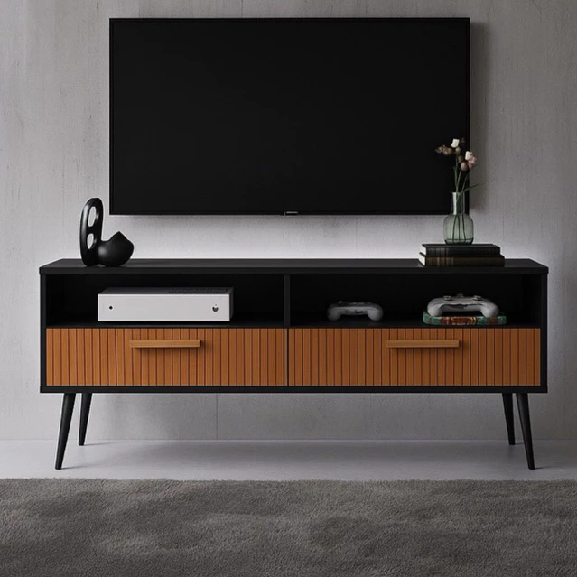 Rack Home Suspenso Copa / Turim com pés 2 Portas Nicho e Puxador de Madeira 110cm - Móveis