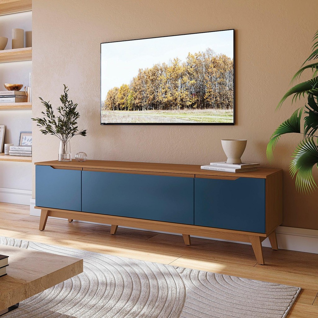 Rack Kappesberg 3 Portas Canela/Azul Profundo 180cm