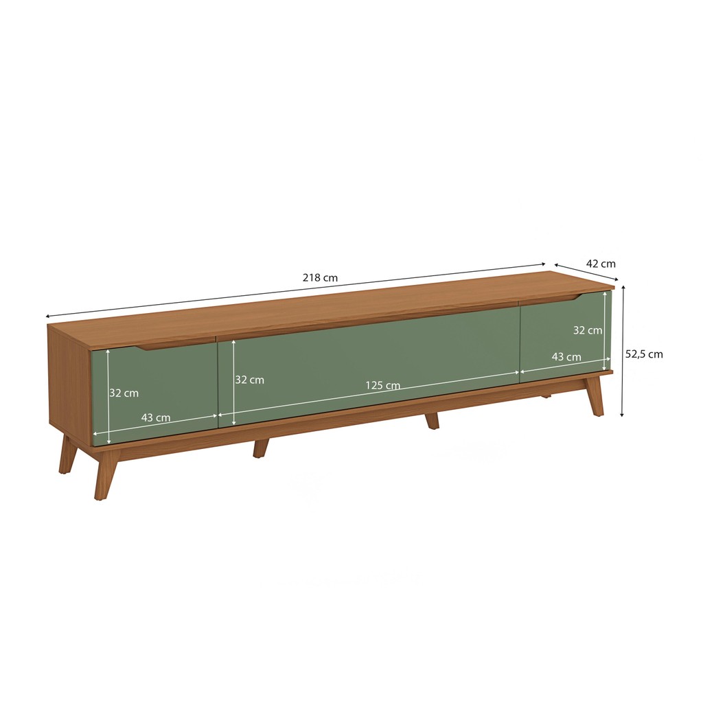 Transforme sua sala de estar com a beleza e a qualidade do Rack 3 portas R264 da Kappesberg. Com um design clássico, ele se encaixa perfeitamente em todos os espaço. São 52,5cm de altura, 2,18m de largura e 42cm de profundidade, produzido com estrutura em MDP de 15mm e portas MDF de 18mm, o que garante mais robustez, firmeza e qualidade ao seu produto, além de um acabamento lindo. E com sete camadas de pintura, tanto na parte interna quanto na externa, a caixaria, em pintura touch na cor canela, conta com a textura dos veios da madeira, enquanto as portas são na cor verde oliva, com acabamento fosco. Uma combinação linda e acolhedora, perfeita para compor a sua sala de estar de um jeito único, e remetendo aos tons da natureza, você terá o espaço ideal para receber sua família e amigos com beleza e conforto. Com duas portas laterais e uma porta basculante central, você terá amplo espaço para guardar seus itens com praticidade, deixando sua sala de estar sempre organizada. A base e os pés completam o design e a qualidade do produto, garantindo seu acabamento clássico e rústico. Nas portas, o destaque fica para o sistema de amortecimento, garantindo um fechamento suave e sem ruídos, além de mais durabilidade, e o puxador cava embutido proporciona o toque de beleza que faltava, deixando sua sala de estar perfeita. Informações importantes: As imagens são meramente ilustrativas, não acompanha acessórios; Pode haver variação de cor de acordo com a calibragem da tela onde o produto está sendo visualizado; Todos nossos móveis são entregues desmontados; A montagem é sempre por conta do cliente (orientamos a contratação de um profissional qualificado, o manual de montagem acompanha o produto); O vídeo do produto pode ser genérico, então atente-se às imagens do anúncio para optar pela cor/modelo.