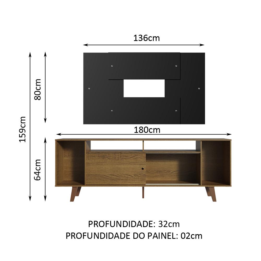 Renove sua sala com o que há de mais moderno em design. Conheça o conjunto do Rack Cancun com Pés e Painel 2185 da Madesa. O rack possui um tamanho ótimo, com uma porta de correr que permite fechar o lado esquerdo ou direito da abertura central. Além disso, são vários nichos de tamanhos variados. Assim, cabe tudo de maneira organizada, dos aparelhos eletrônicos até objetos decorativos, livros e revistas. Para completar, os pés dão mais firmeza e aumentam a altura do móvel. O painel tem design que mistura padrões verticais e horizontais. Comporta TV de até 58 polegadas e possui uma abertura central que facilita na passagem dos fios. Por ser separado do rack, pode ser fixado na altura desejada, conforme sua preferência ou necessidade. O acabamento do rack é no padrão amadeirado Rustic e o do painel é preto. O processo é feito em Poliéster Protetor com 7 camadas, detalhe que confere mais durabilidade e qualidade aos produtos. Além disso, é ecológico, isento de vapores prejudiciais à atmosfera. Imagens meramente ilustrativas. Itens inclusos: - Um (1) Rack de 64 cm de altura x 180 cm de largura x 32 cm de profundidade com pés em PVC - Um (1) Painel de 80 cm de altura x 136 cm de largura Código do produto: MDES0200215ZD8 Obs: A Madesa não disponibiliza serviço de montagem. O produto segue com manual e todas as ferragens necessárias para a instalação. A Madesa possui compromisso com a sustentabilidade. Geramos energia limpa em nossa própria usina, priorizamos fornecedores responsáveis e utilizamos plástico reciclado em nossa produção. Além disso, reinserimos sobras no ciclo de reciclagem e investimos no desenvolvimento de nossos colaboradores e da comunidade. Garantia: Este produto conta com 1 ano de garantia total, sendo 3 meses de garantia legal e 9 meses de garantia contratual. A garantia cobre exclusivamente defeitos de fabricação e vícios ocultos. Não estão cobertos: problemas decorrentes de montagem incorreta, uso inadequado, exposição à umidade, calor ou luz solar direta, modificações no produto ou desgaste natural.
