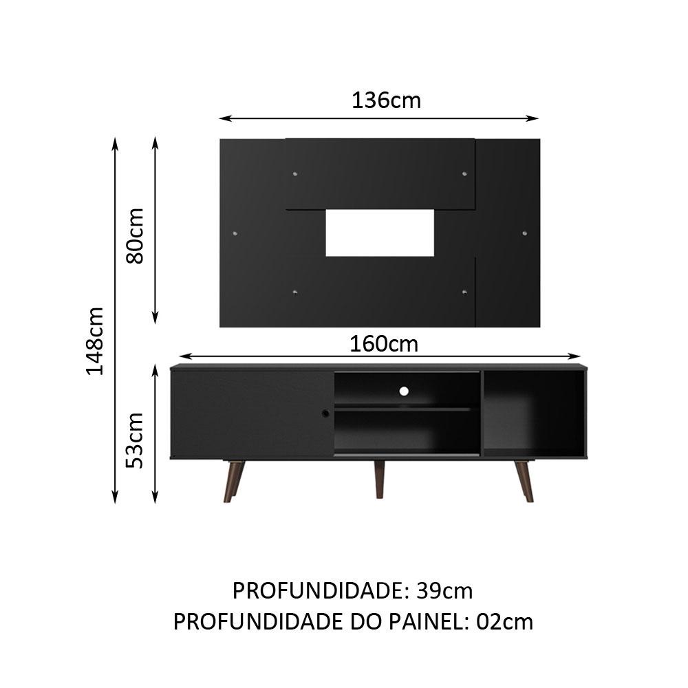 Rack Madesa Dubai com Pés e Painel para TV até 58 Polegadas - Preto/Rustic 8ND8