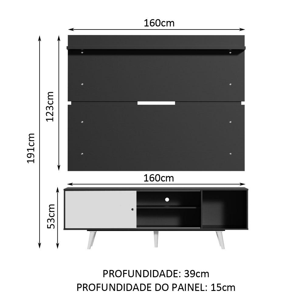 Rack Madesa Dubai e Painel para TV até 65 Polegadas com Pés - Preto/Branco 7777