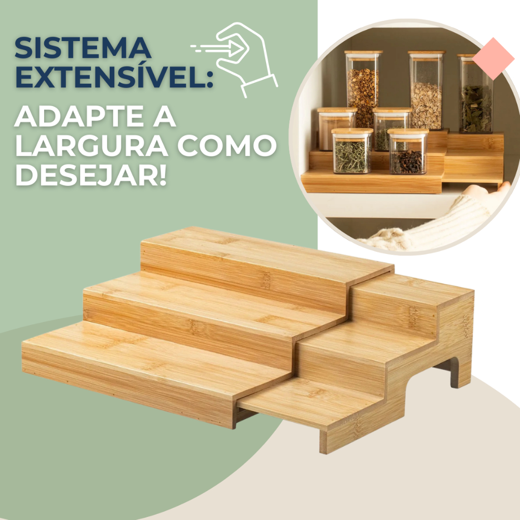Rack Organizador Extensível De Bambu Escadinha 3 Níveis Suporte Porta Temperos Condimentos Ou