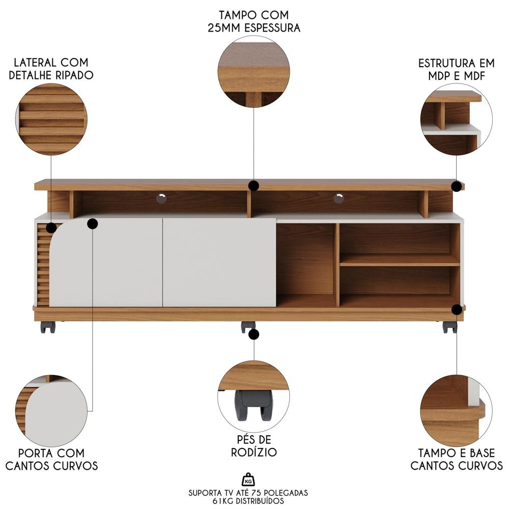 Rack para Sala Bancada de TV 75 Pol 180cm Madrid C05 Freijó/Off White Matte - Mpozenato