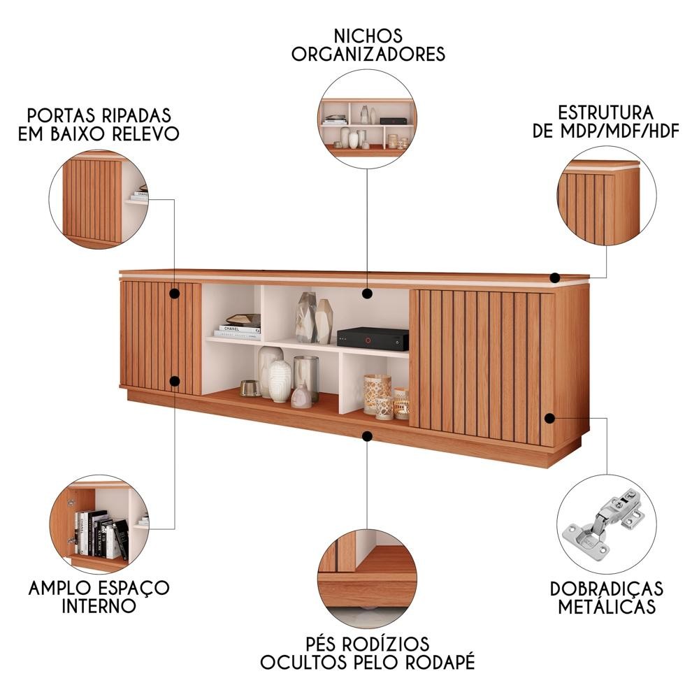 Rack Para Sala Bancada de TV 75 Pol 180cm Simetria Freijó/Off White - Caemmun