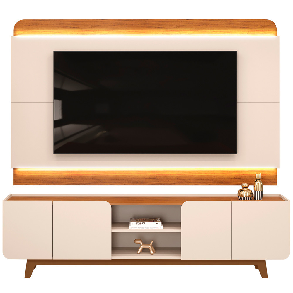 Rack Para Sala com Painel Para TV 75 Pol LED Cine D05 Off White Freijó - Lyam Decor