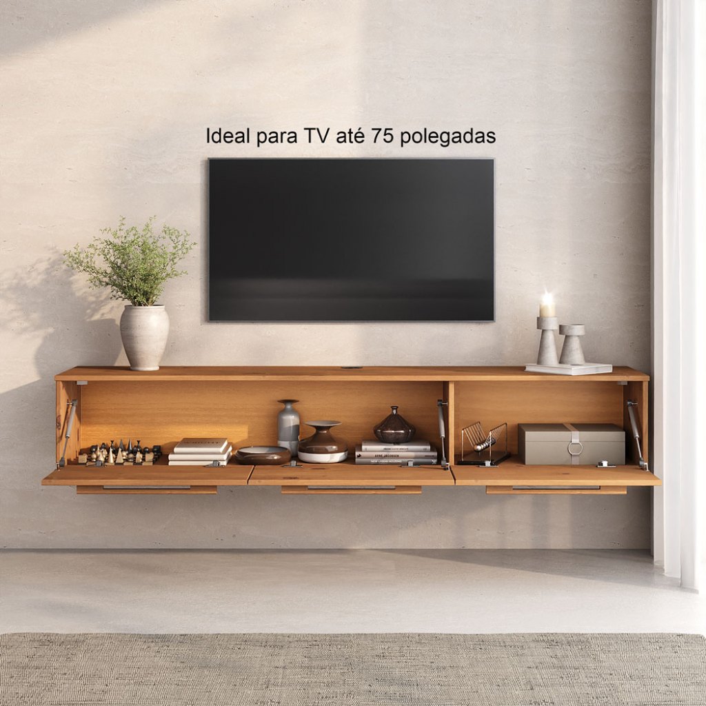 Rack Para Sala Suspenso 3 Portas TV 75 Madeira Freijó TECCA