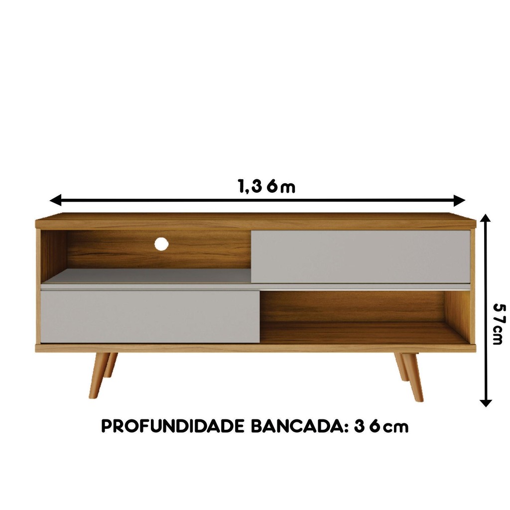 Mesclando o design retro dos pés palito e a modernidade das portas deslizantes o Rack NT 1180 da Notável Móveis vai deixar a sua sala de TV muito mais bonita, conta com quatro nichos espaçosos, espaço para eletrônicos e suporta TV's de até 50". DESCRIÇÃO TÉCNICA: Altura: 57cm Largura: 1,36m Profundidade: 36cm Peso (kg): 26,3 Peso suportado – distribuído (kg): 55 Material: MDP 15/25mm CARACTERÍSTICAS: Acabamento: cor freijó (fosco); cor preto tx (fosco texturizado); cor off white (brilho) Pintura: U.V (ultravioleta) Acabamento: freijó: fosco/ off white: brilho Quantidade porta (s): 2 deslizante Ideal para TV até: 50 polegadas EMBALAGEM (LxPxA): Volume 1: 1,59m x 38cm x 88cm Peso (kg): 27,4 OBSERVAÇÕES: Necessita montagem: sim Acompanha manual de montagem: sim Quantidade de volume (s): 1 Garantia: 90 dias contra defeito de fabricação RECOMENDAÇÃO: - Para maior durabilidade, recomenda-se que a limpeza seja feita com pano limpo e levemente umedecido em água e sabão neutro. Em seguida, deverá ser passado um pano limpo e seco. MONTAGEM E ENTREGA: - Não oferecemos montagem. Os nossos móveis são entregues desmontados e todos acompanham manual com instruções de montagem. - Sempre verifique o nível de complexidade de montagem e em caso de dúvida não monte sozinho (a), contrate um profissional - Nos responsabilizamos pela entrega dos produtos adquiridos até a porta de entrada ou portaria do endereço indicado, se a portaria do condomínio permitir, as entregas são efetuadas no piso térreo e é de responsabilidade do cliente a locomoção da mercadoria até seu apartamento ou casa. As transportadoras não estão autorizadas a subir escadas, elevadores ou realizar o içamento de produto. IMAGENS: - As imagens ambientadas são meramente ilustrativas e podem apresentar itens que não compõe o produto. - Objetos decorativos da imagem não acompanham o produto. - As cores do produto podem sofrer variação de acordo com o seu monitor a iluminação do seu ambiente ou sua percepção visual.