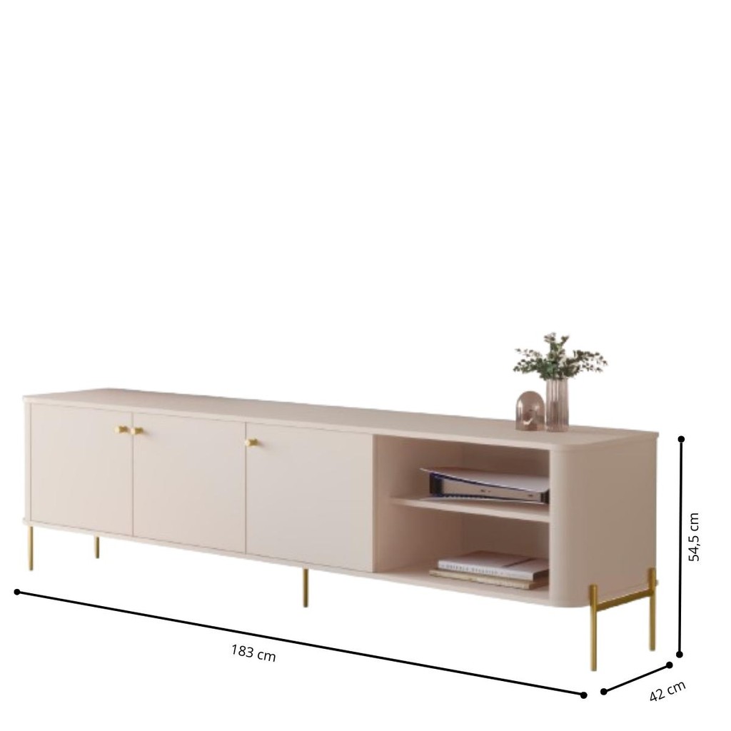 O Rack para TV é perfeito para você e seu cômodo. Trazendo sofisticação e modernidade para o ambiente, e proporcionando uma melhor organização para os seus aparelhos. Possui pés e puxadores em metal, a base e topo em MDF 15mm, 3 porta e 1 prateleira. Dimensões do produto: Altura: 54,5 cm Largura: 183 cm Profundidade: 42 cm Informações Adicionais: Cor: Off White/Dourado Material : MDP 15 mm TVs de até: 70" Prateleiras: Sim (1) Nichos: Sim (2) Portas: Sim (3) Itens inclusos: 1 Rack. Kit completo para montagem e manual de instruções. Garantia: 3 meses contra defeito de fabricação. Informações complementares: - Fotos meramente ilustrativas do produto no ambiente. - Os objetos que ambientam as fotos não acompanham o produto; - Verificar descrição e tamanho do produto antes da compra. - Avaliar a mercadoria no ato do recebimento e recusar em caso de divergência ou avarias. - Mantenha as informações de contato e endereço de entrega atualizados para entrarmos em contato caso necessário. - Limpar com flanela ou pano macio seco, não utilizar produtos abrasivos, desengordurantes, álcool ou solvente. Não expor o produto diretamente à luz solar e à umidade. * Sugerimos a contratação de um montador profissional para a montagem do produto. Não nos responsabilizamos por avarias causadas no ato da montagem. * Não nos responsabilizamos pela montagem e desmontagem do produto no ato da entrega e devolução, assim como os custos gerados nestas situações. * A transportadora entregará o produto no andar térreo do endereço de entrega. * Não nos responsabilizamos por subir escadas, corredores e elevadores ou transporte por guincho em apartamentos.