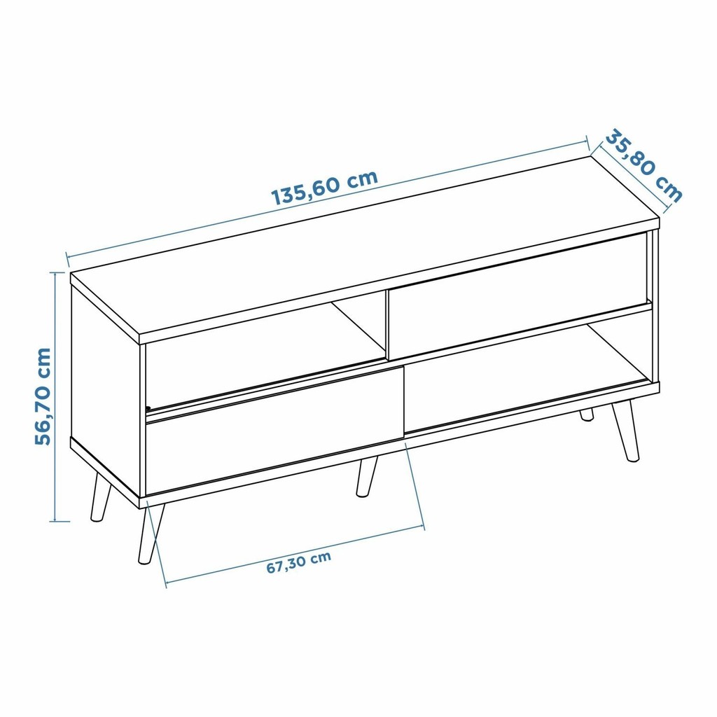 Mesclando o design retro dos pés palito e a modernidade das portas deslizantes a bancada NT 1180 da Notável Móveis vai deixar a sua sala de TV muito mais bonita, conta com quatro nichos espaçosos, espaço para eletrônicos e suporta TV's de até 50" Estilo: Moderno Peso (kg): 26.11 Garantia: 03 Meses Altura (cm): 56.7 Acabamento: Pintura UV Largura (cm): 135.6 Possui Pés: Sim Possui Vidro: Não Possui Portas: Sim Tipo de Porta: Correr Altura dos Pés: 15.5 Possui Gavetas: Não Possui Rodízio: Não Suporta Até (kg): 55 Possui Espelhos: Não Profundidade (cm): 35.8 Escala de Brilho: Fosco Material dos Pés: PVC Material da Porta: MDP Origem do Produto: Nacional Possui Iluminação: Não Ambiente Principal: Sala de Estar Material Principal: MDP Possui Prateleiras: Sim Acabamento da Porta: Pintura UV Sapatas Niveladoras: Não Material da Prateleira: MDP Quantidade de Espelhos: Não Acabamento da Prateleira: Pintura UV Tipo de Puxador da Porta: Embutido Escala de Brilho da Porta: Brilhante Peso Máximo por Prateleira: 5 Ideal para TVs até (Polegadas): 50 Escala de Brilho da Prateleira: Brilhante Marca: Notável Móveis Cor Interna: Freijó Cor: Freijó Trend/Off White Cor do Produto: Freijó Trend/Off White Itens Inclusos: 1 Rack, Kit Ferragens e Manual de Montagem Cor Predominante: Marrom Linha ou Coleção: 2022 Quantidade de Prateleiras: 01 Prateleira Quantidade de Portas: 2 Portas